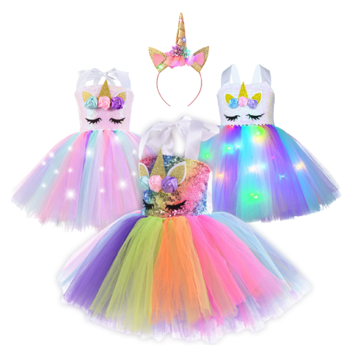 Les licornes sont des personnages fascinants que nos petites filles adorent. Vivez une expérience de jeu encore plus palpitante avec cette robe licorne lumineuse à paillettes. Une robe licorne lumineuse certifiée sans danger qui leur permettra de se sentir et d'être les plus belles en toute occasion. C'est aussi un excellent choix pour l'anniversaire de votre petite princesse et pour ses séances photo.
