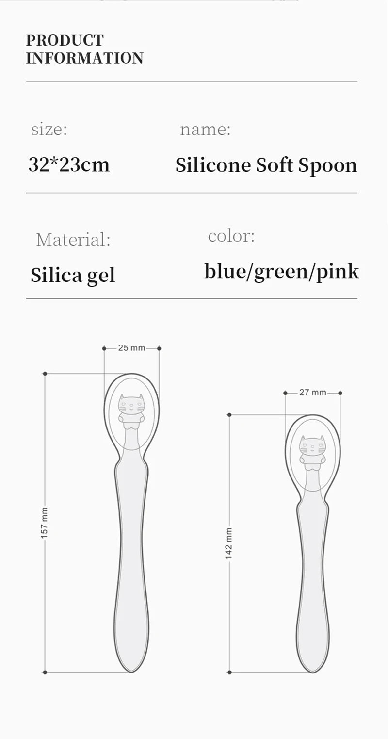 - Matériau en silicone de qualité alimentaire : Fabriquée en silicone de qualité alimentaire, notre cuillère respecte les gencives et les dents délicates de votre bébé, offrant une expérience d'alimentation confortable.