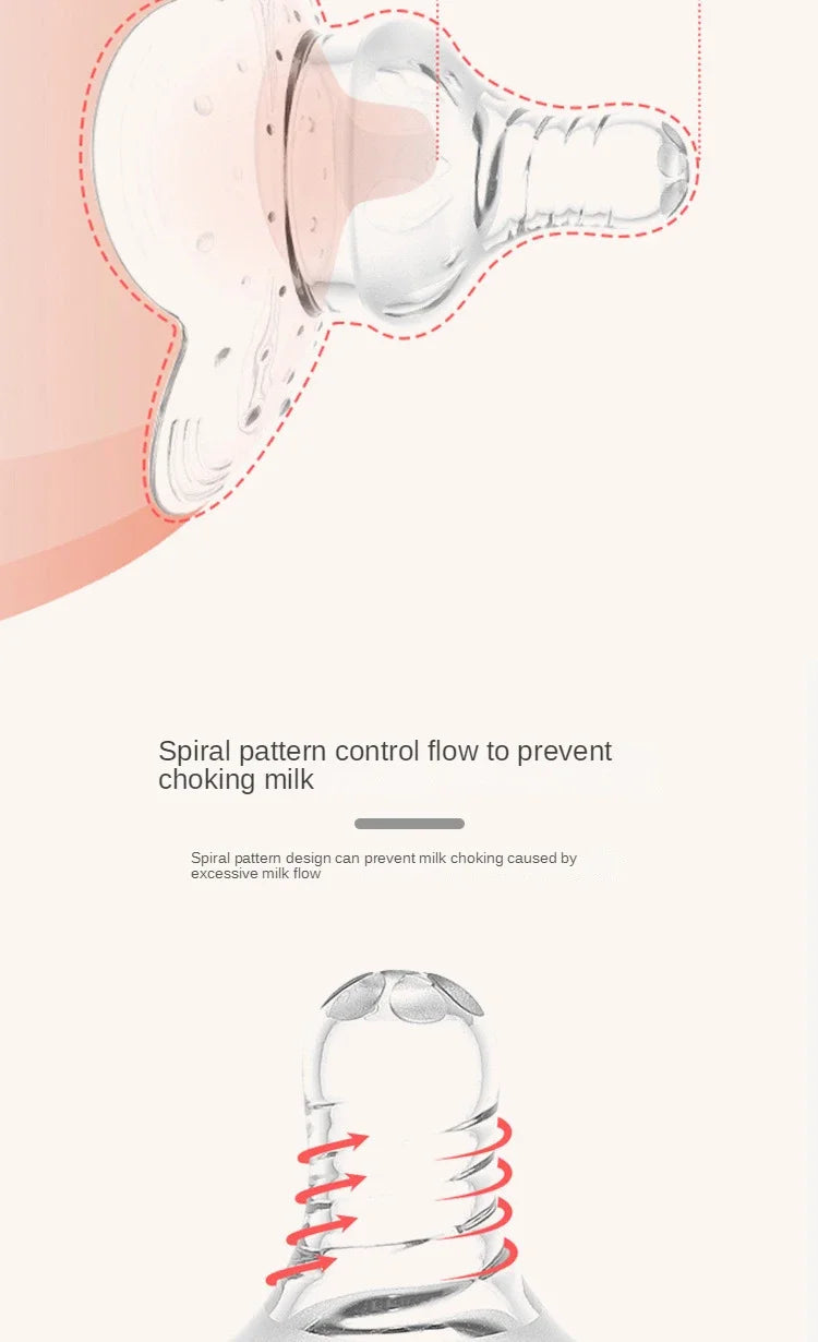 Doux, légers et flexibles, ces protège-tétons, dotés d'orifices de traite croisés et d'une tétine à débit variable, conviennent aux bébés de tous âges. La mécanique en spirale de la tétine prévient les chocs pendant la tétée, garantissant une expérience douce et confortable.