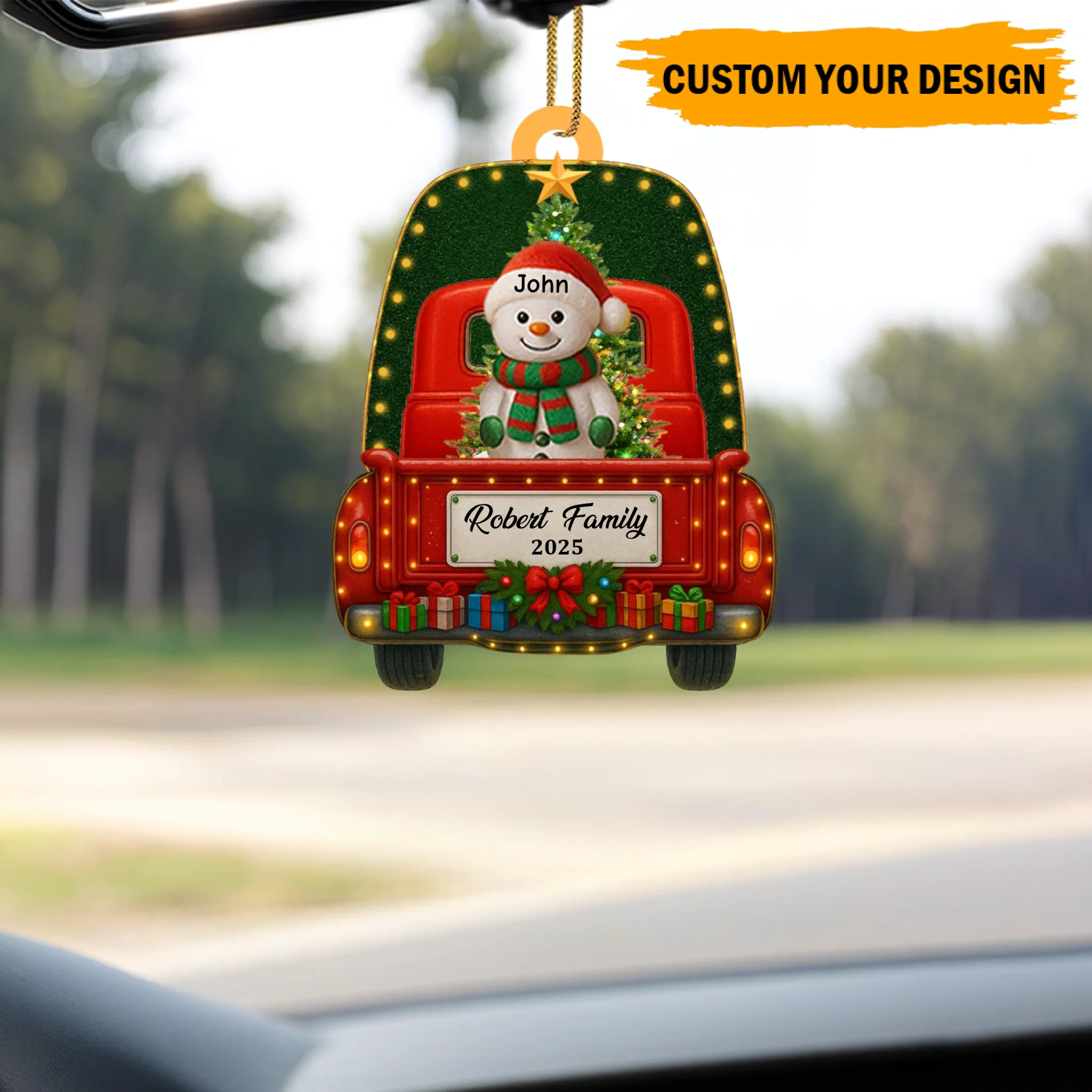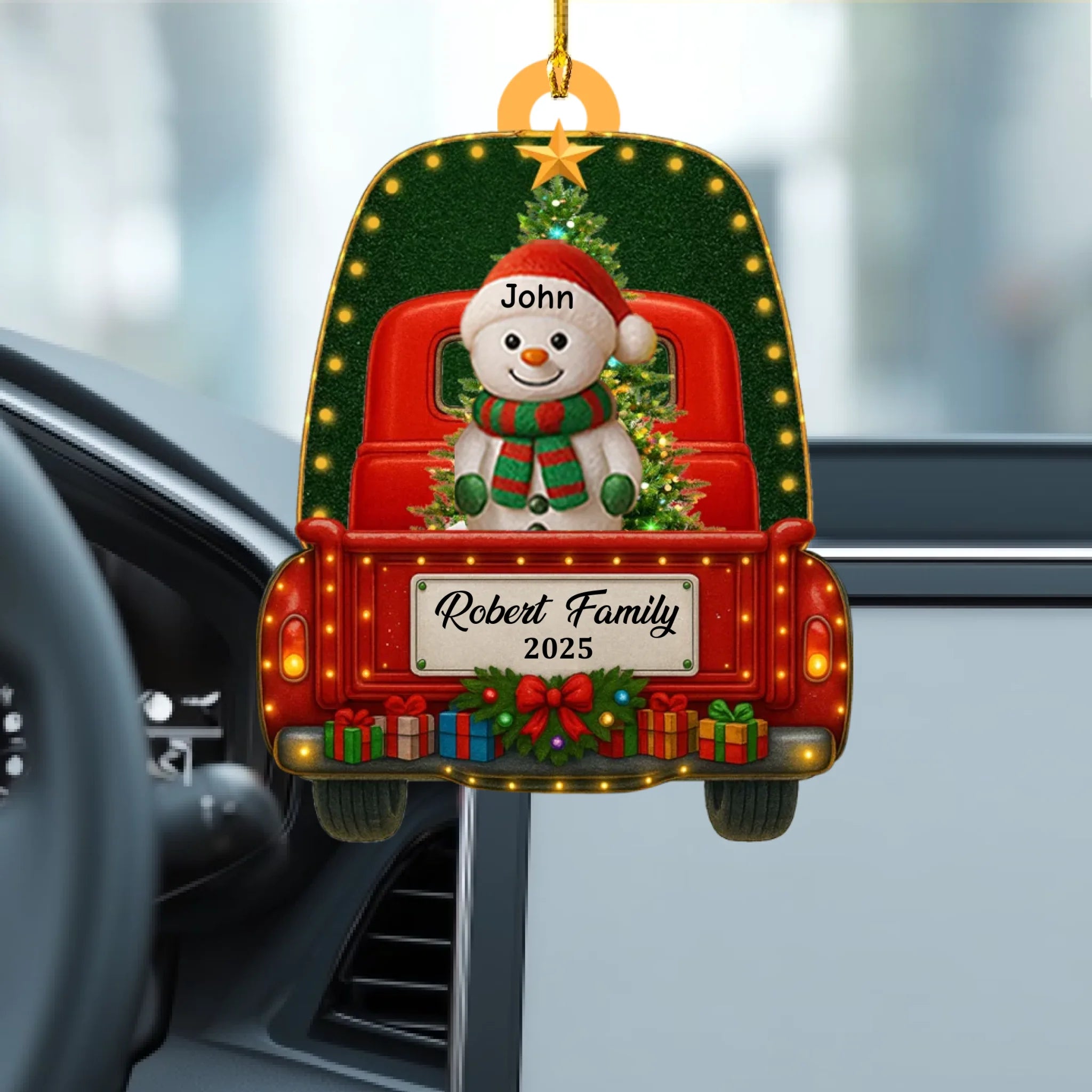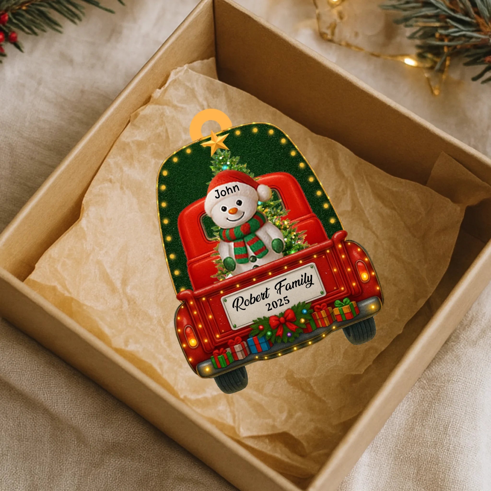 Ornement de Voiture Famille Bonhomme de Neige Personnalisé pour Noël – Nom de Famille, Année & Membres sur Mesure | Cadeau Décoration de Noël en Bois Unique