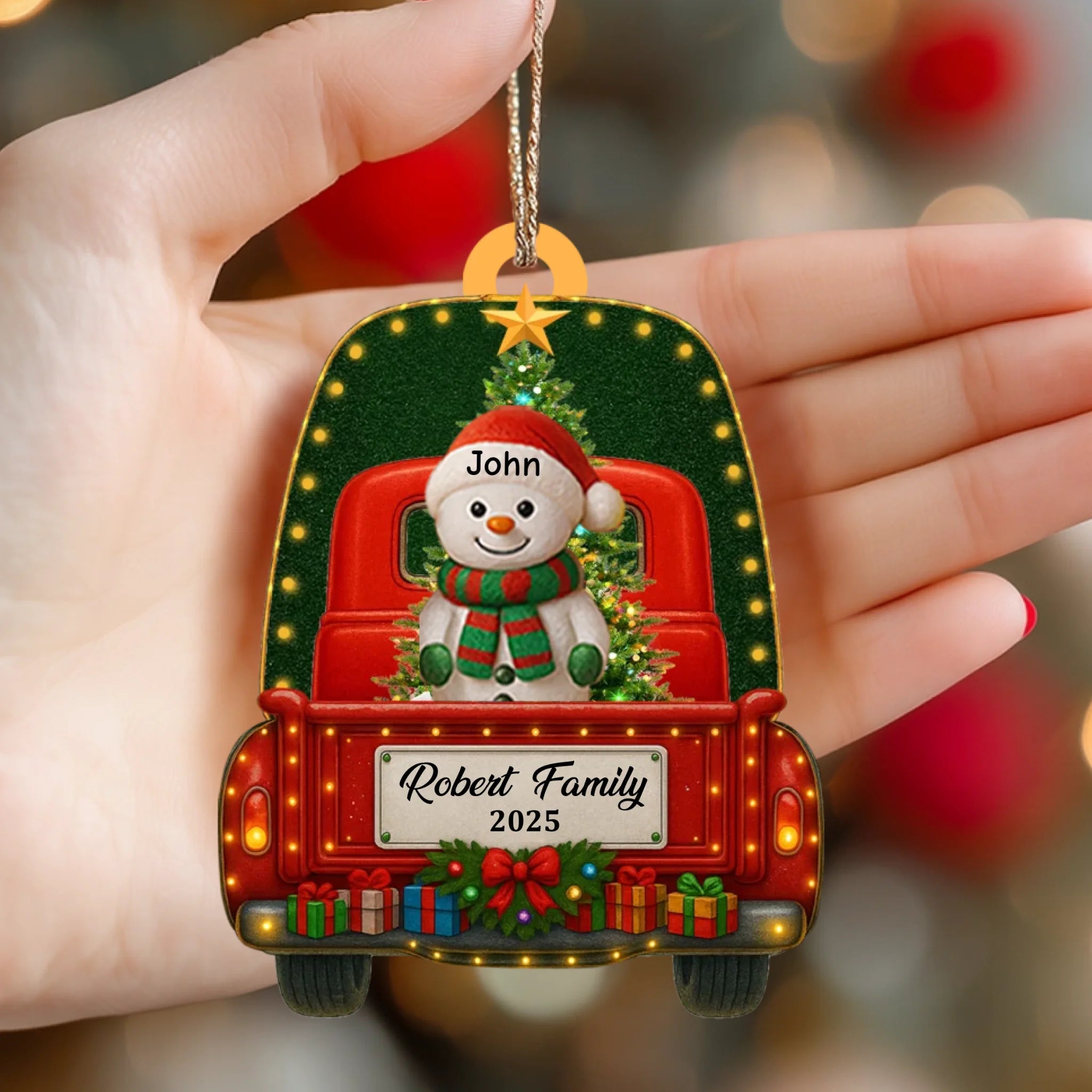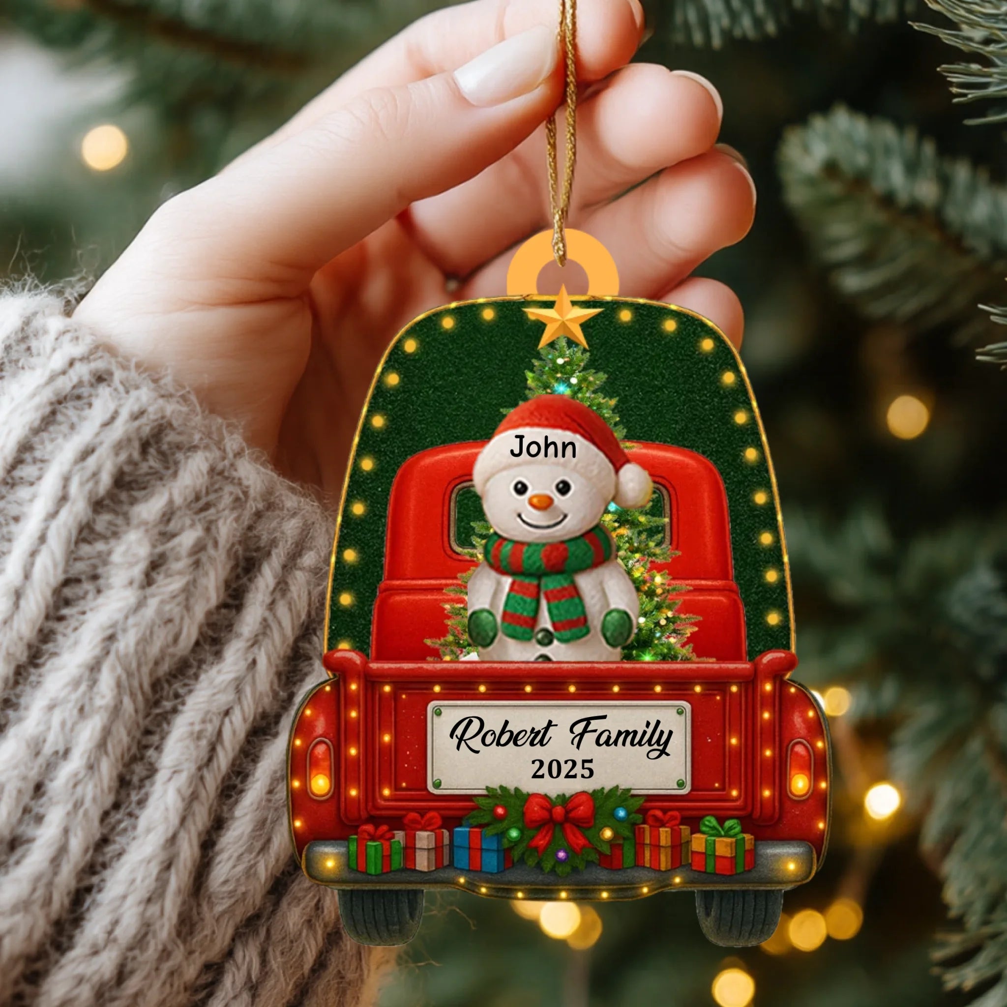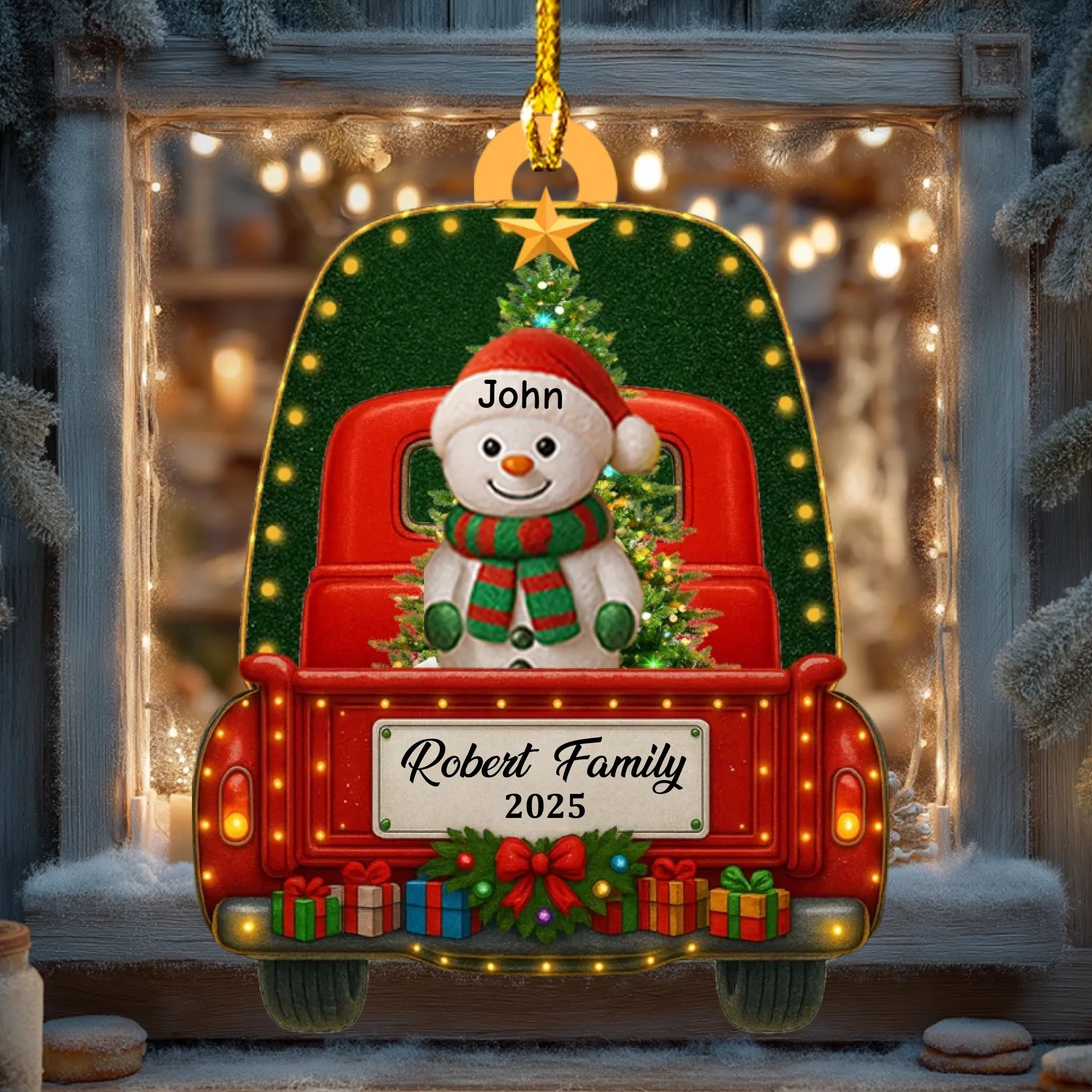 Ornement de Voiture Famille Bonhomme de Neige Personnalisé pour Noël – Nom de Famille, Année & Membres sur Mesure | Cadeau Décoration de Noël en Bois Unique