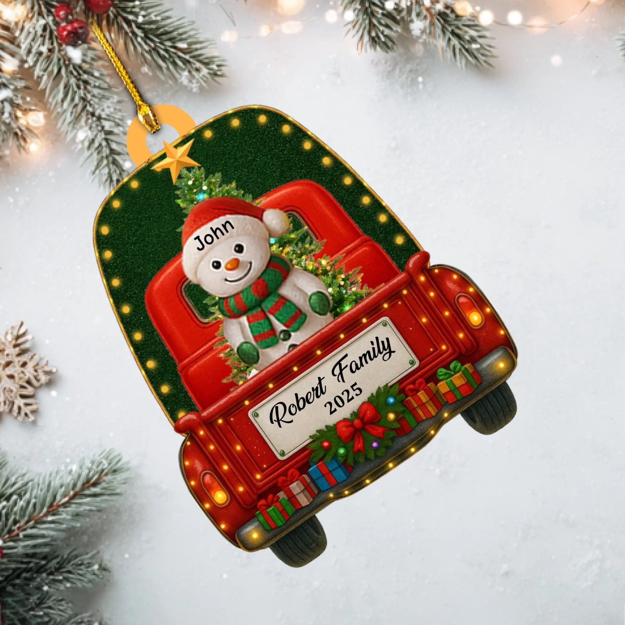 Apportez chaleur et joie à vos fêtes avec ce charmant Ornement personnalisé Famille Bonhomme de neige en Voiture de Noël. Présentant une famille de bonshommes de neige à bord d’une voiture de Noël festive, cet ornement incarne l’esprit d’amour, de convivialité et de gaieté des fêtes. Bien plus qu’une simple décoration, c’est un souvenir riche de sens que vous pouvez entièrement personnaliser avec votre nom de famille, l’année et le prénom et numéro de chaque membre — en faisant une représentation vraiment unique de vos proches.