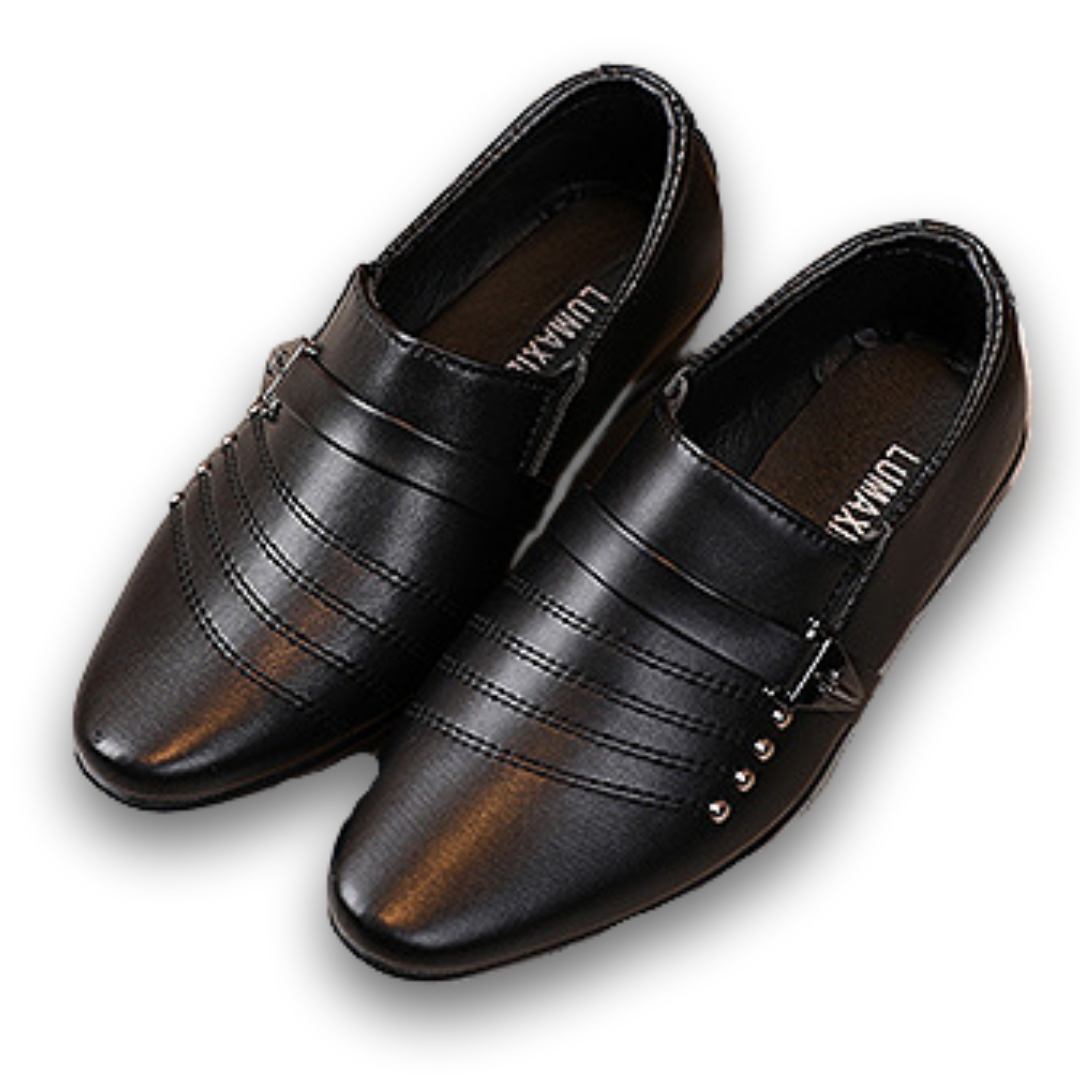 Chaussures de soirée habillées en cuir pour garçons, motif point et ceinture