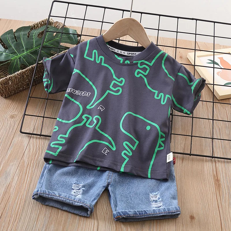 Découvrez notre survêtement d'été Dinosaure pour garçon ! Idéal pour les petits actifs de 12 mois à 5 ans, ce survêtement est parfait pour les aventures estivales. Fabriqué en coton doux et respirant, il assure un confort optimal même lors des journées les plus chaudes.