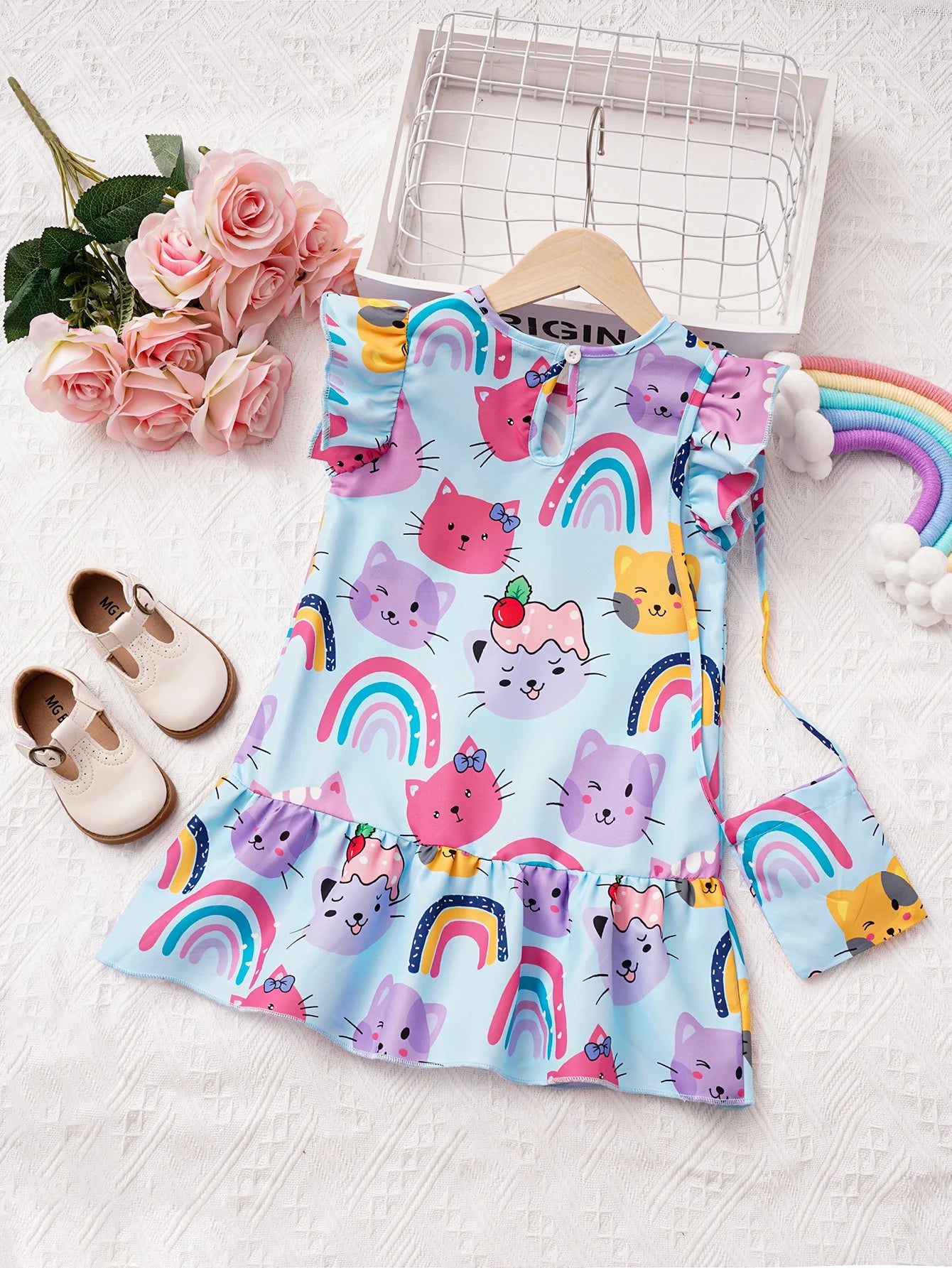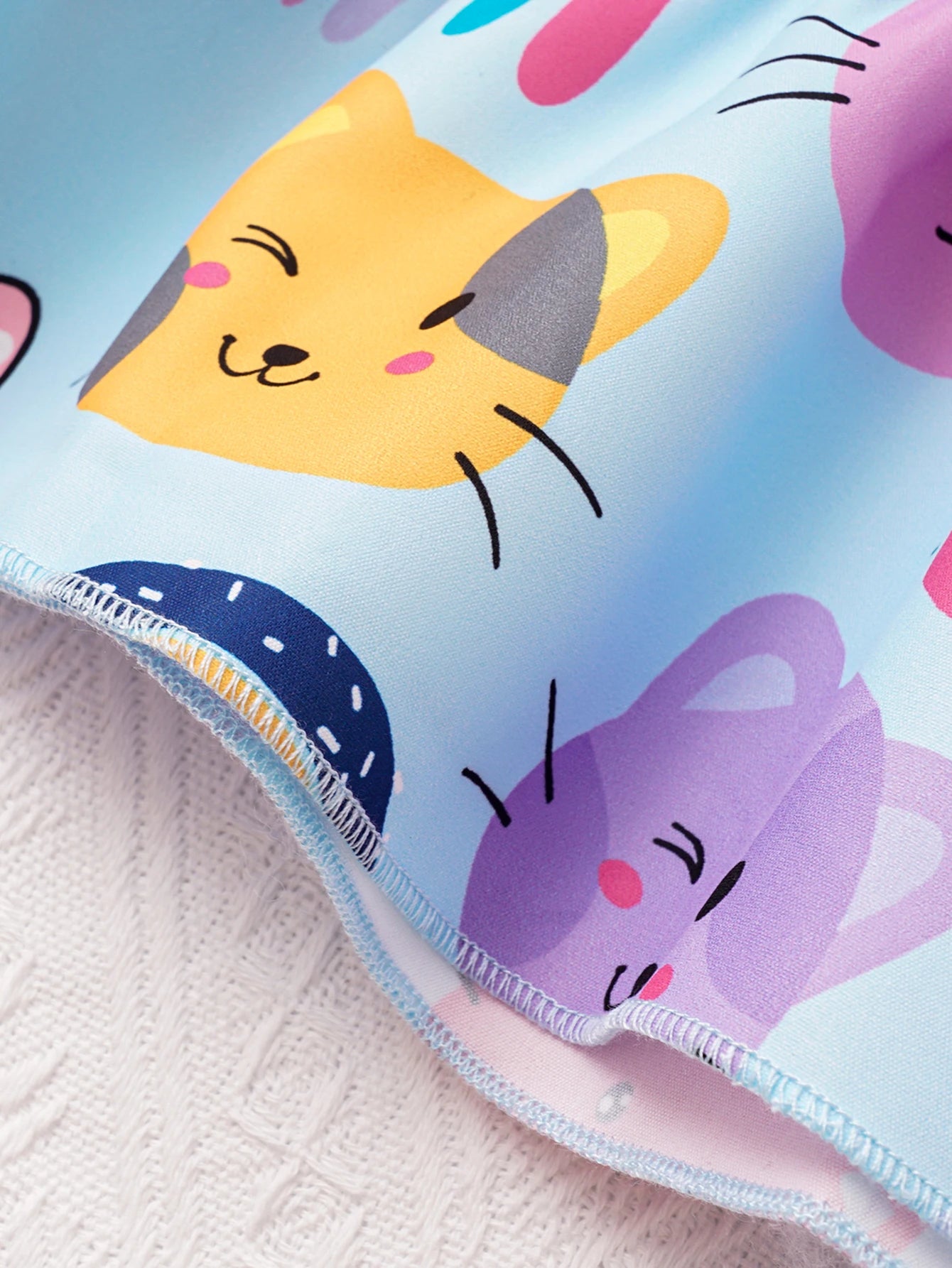 Robe d'été à imprimé dessin animé pour fille : joli col rond