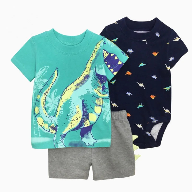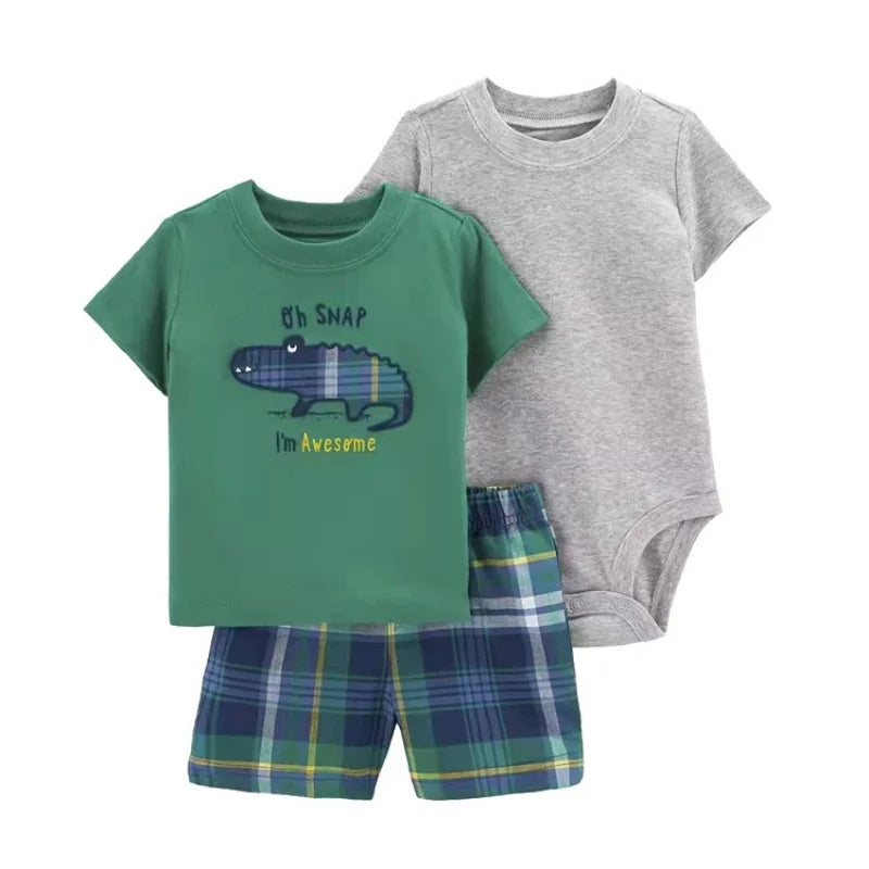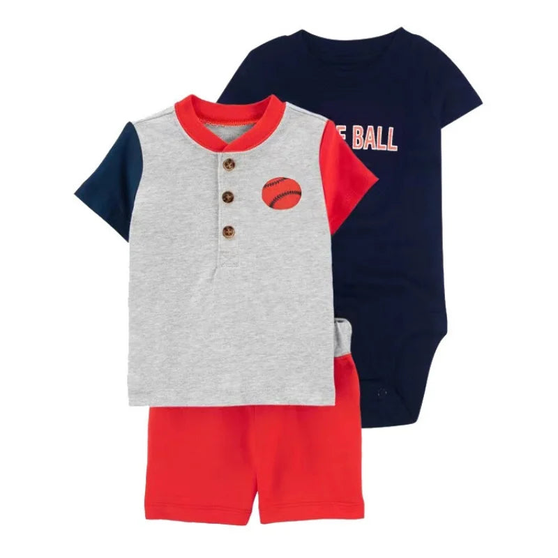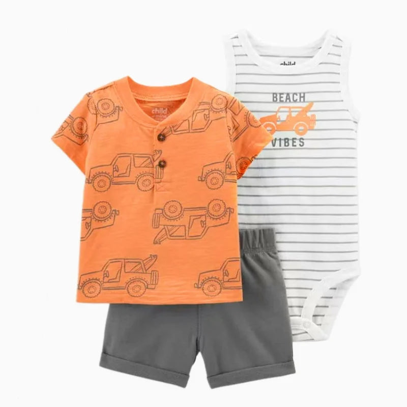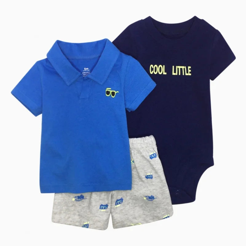 Ensemble d'été pour nouveau-né garçon | Ensemble 3 pièces en coton : t-shirt à manches courtes, short et body (6-24 mois)