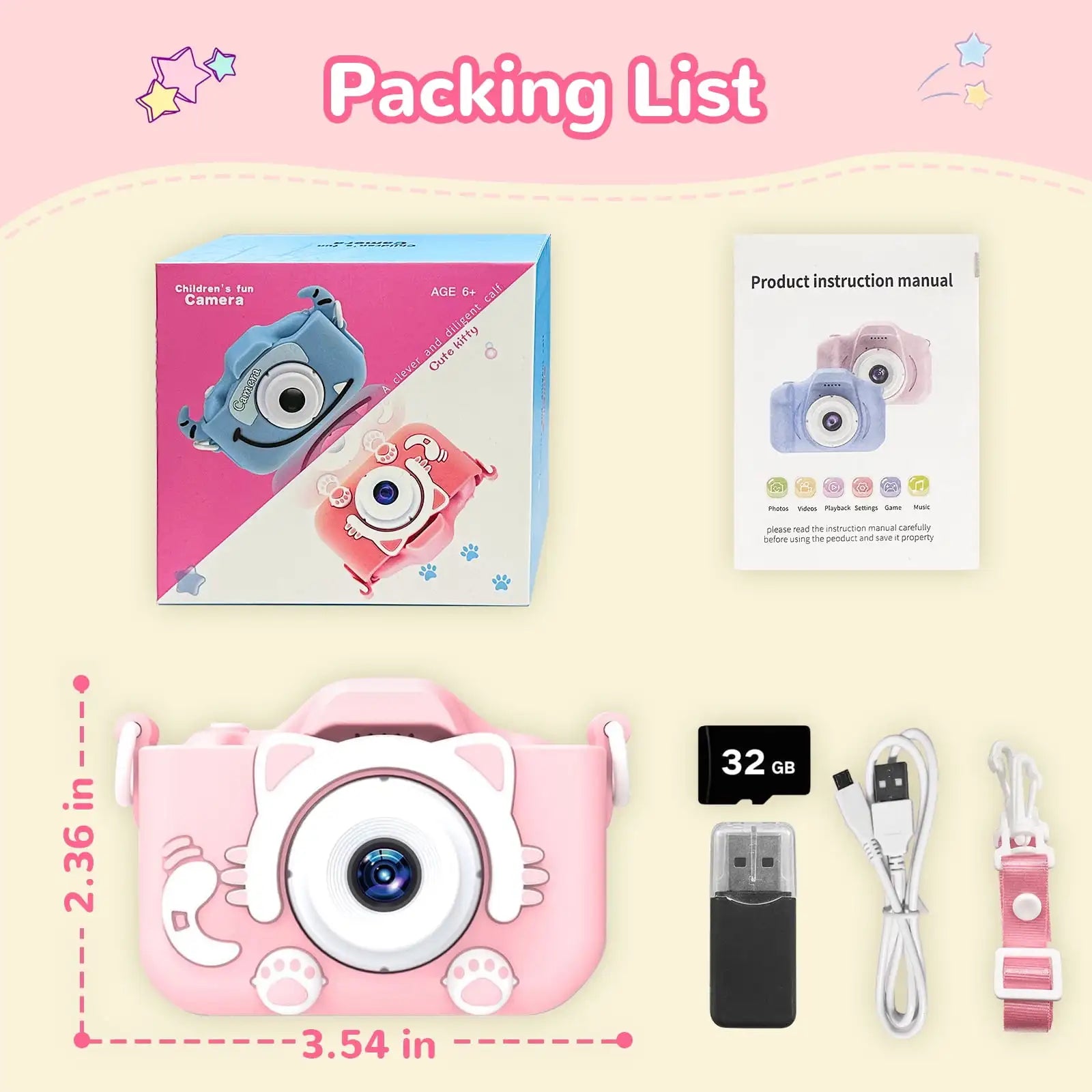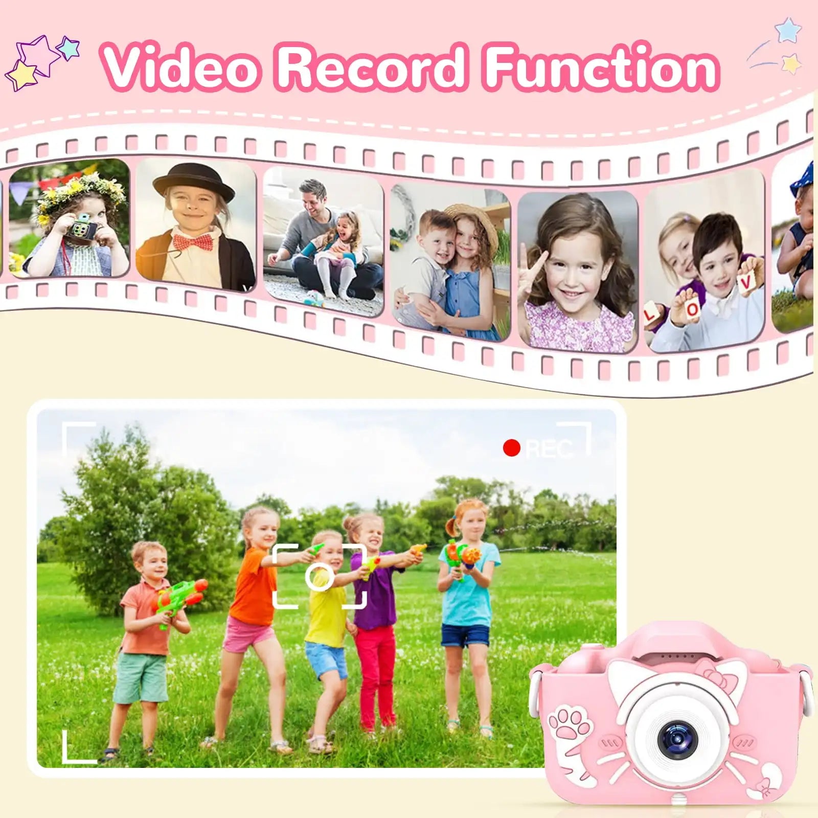 Introduce your child to the joy of photography with this compact and lightweight digital camera designed specifically for kids. With a 2.0-inch IPS display, dual front and rear HD lenses, and fun features like games and filters, this toy camera is the perfect first device for young creators.