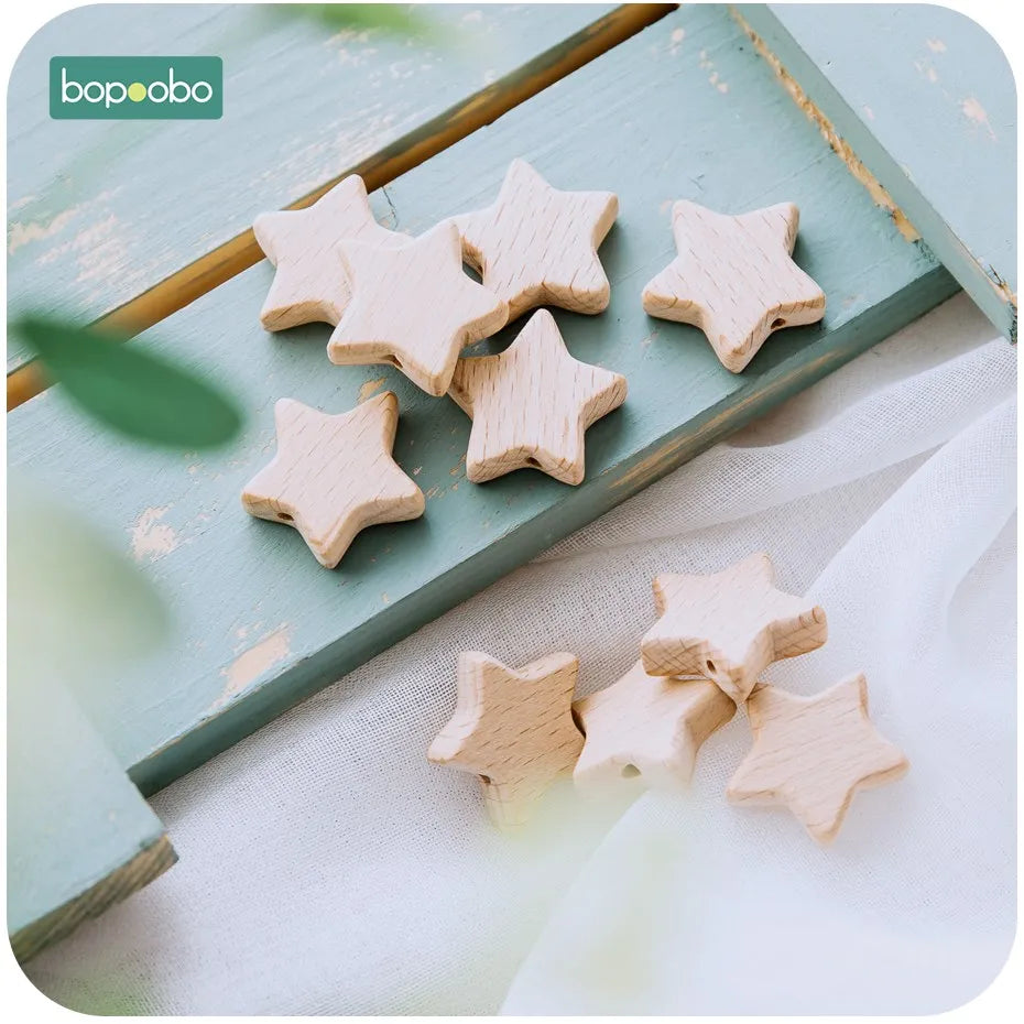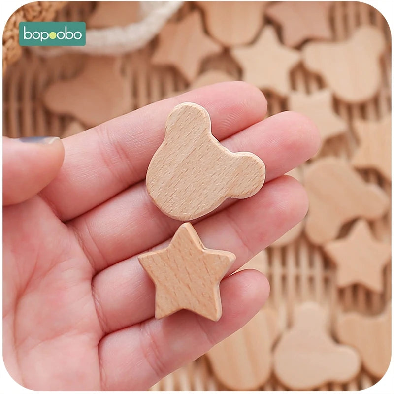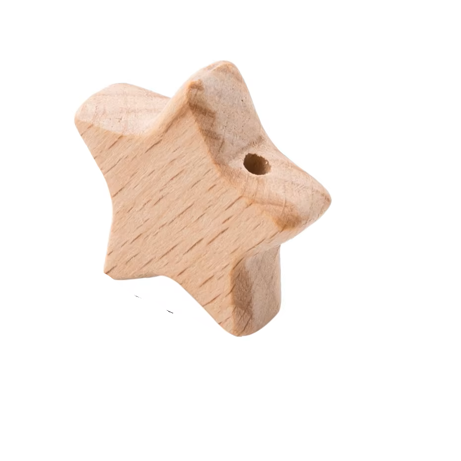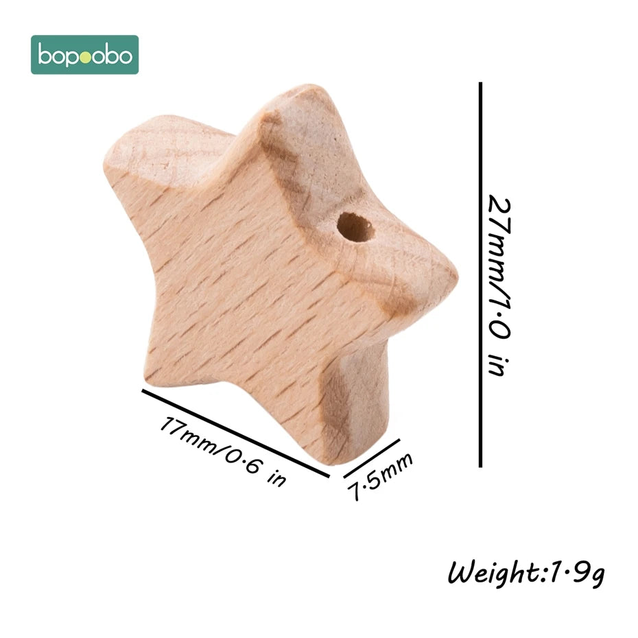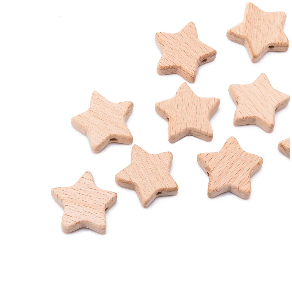 10PCS Wooden Star Beads – Natural Beech Wood Teething Beads for Babies | BPA-Free, Chewable, Safe DIY Craft Supply