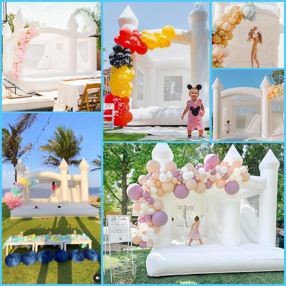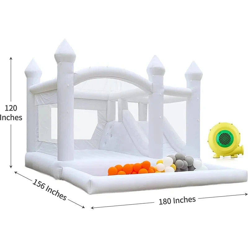 15 FT Commercial Grade White Bounce House with Slide and Ball Pit, Heavy-Duty PVC Inflatable Castle for Weddings, Birthdays, and Party Decorations (Max Load 440 lbs)