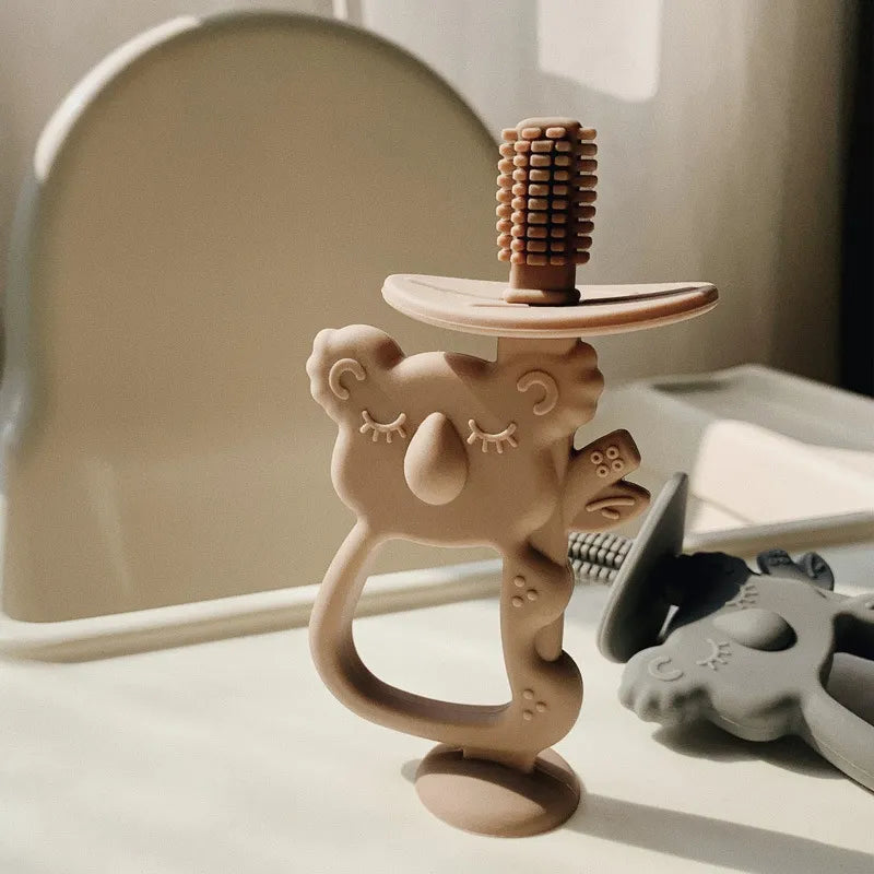 Crafted from safe and durable silicone, our training toothbrush doubles as a delightful teether and chew toy. The charming Koala design adds a playful touch to your child's oral care routine, making it an engaging experience they'll look forward to.