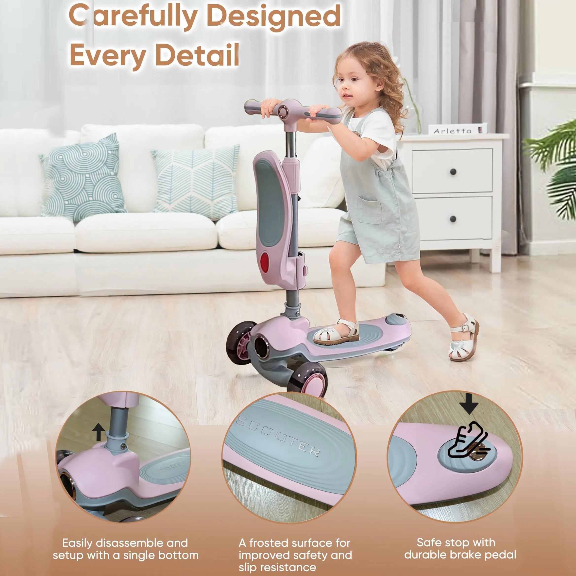 2-in-1 Convertible Design: Functions as a comfortable, stable Seated Ride-On Scooter for younger toddlers and quickly converts into a 3-Wheel Standing Kick Scooter as your child grows and gains confidence.