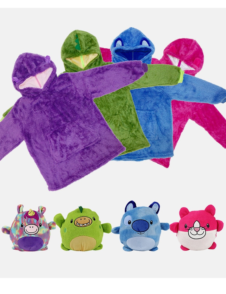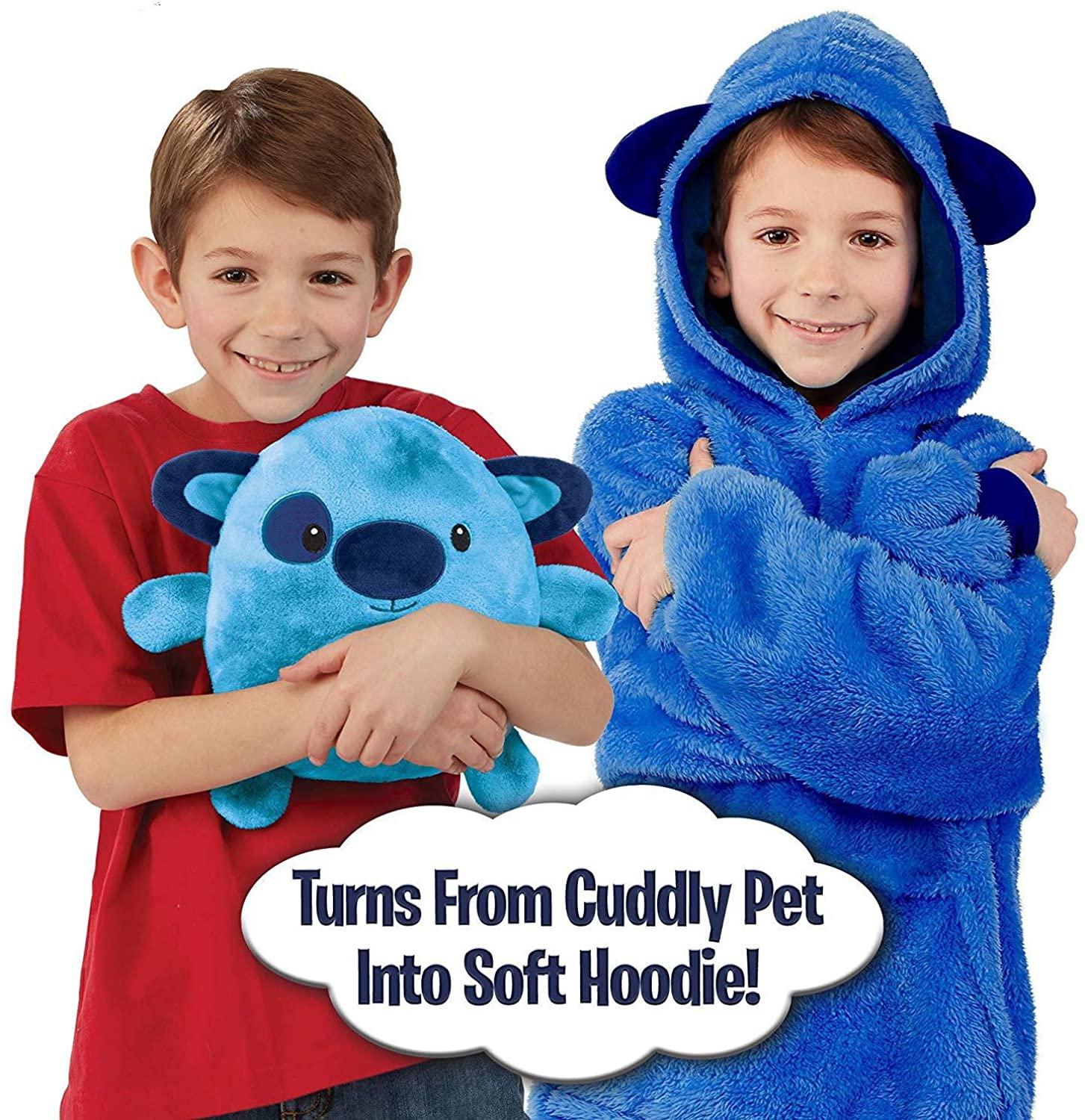 - Fleece stuffed pillow animal that can be made into a hoodie when spread.