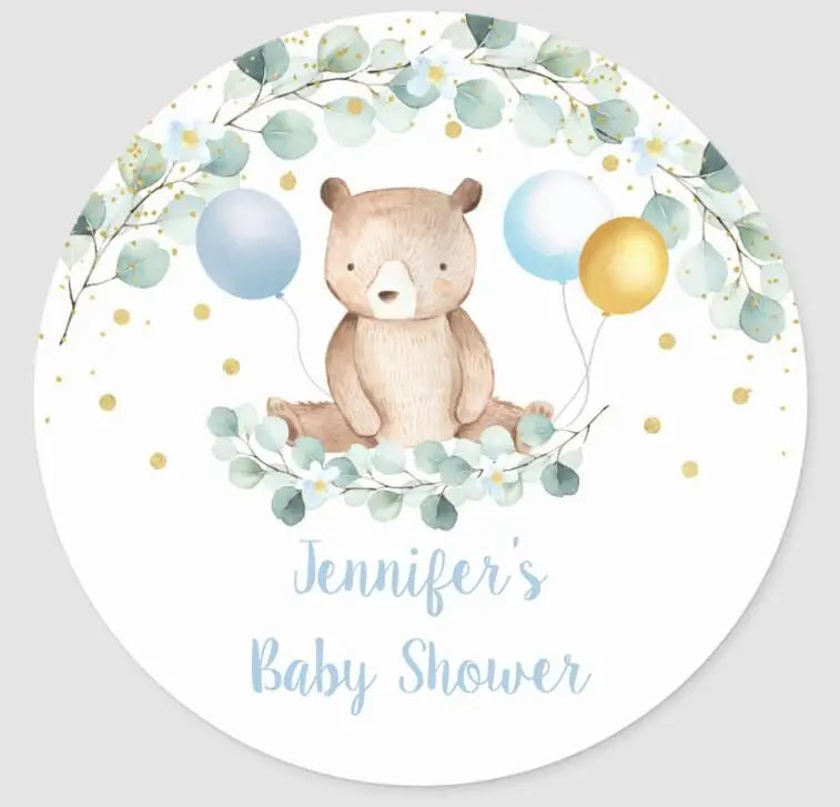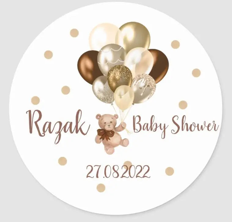 Autocollants personnalisés en forme d'ours pour ballons de baptême (2025) – Étiquettes personnalisées pour baby shower et fête d'anniversaire sur le thème du zoo