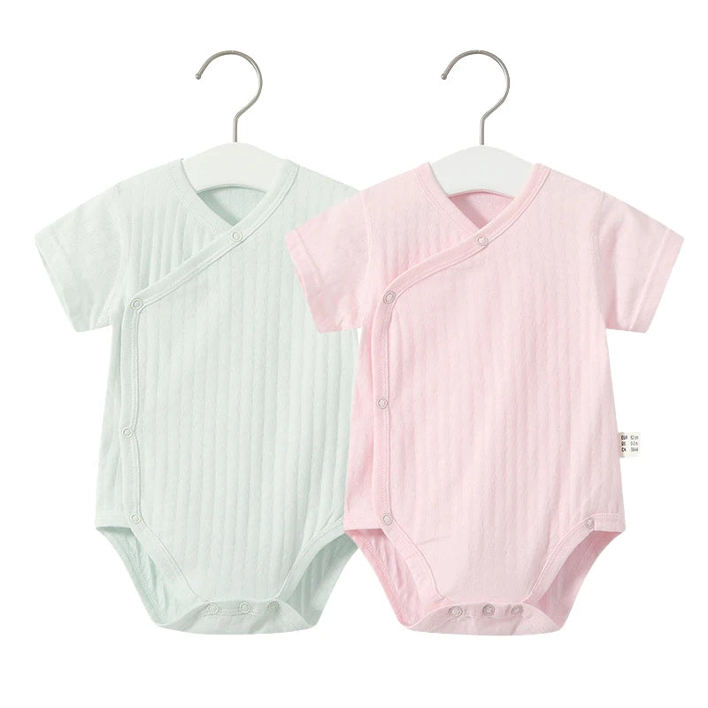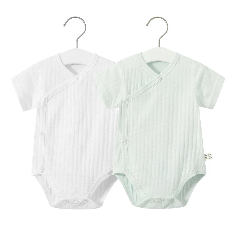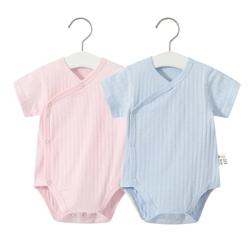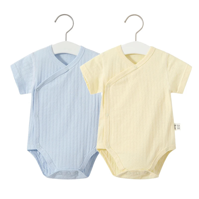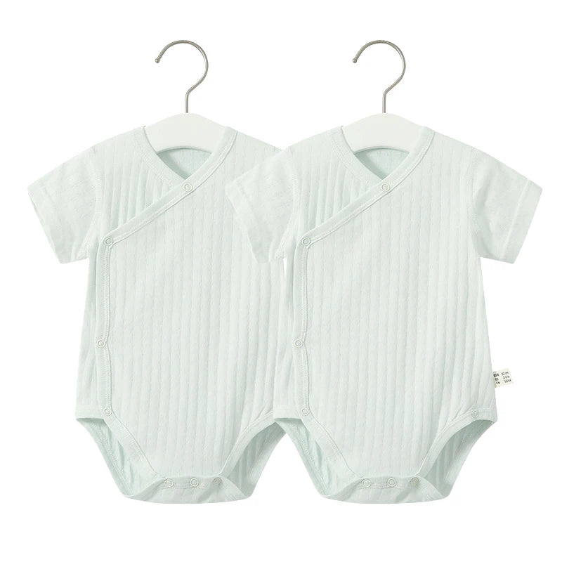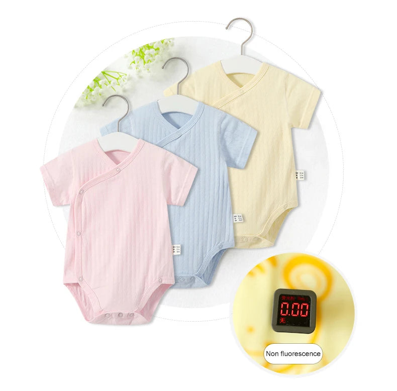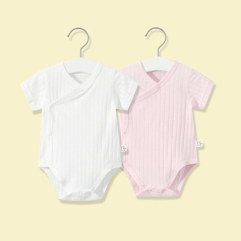 Summer-ready Design: With short sleeves and a V-neck collar, our romper set is ideal for keeping your baby cool and comfortable during the warmer months.