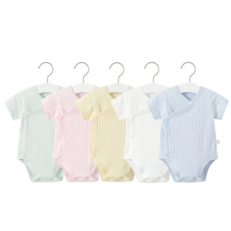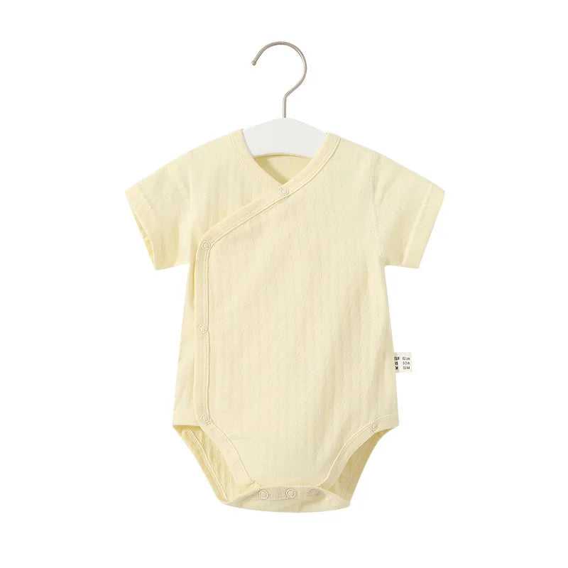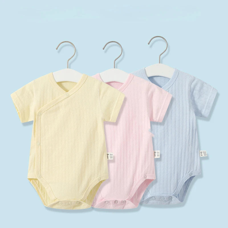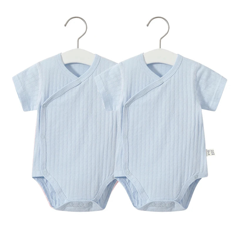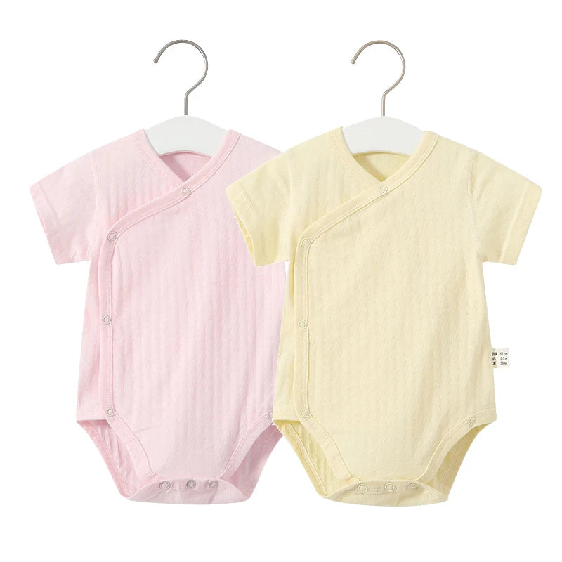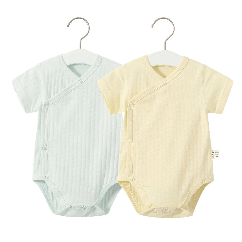 Summer-ready Design: With short sleeves and a V-neck collar, our romper set is ideal for keeping your baby cool and comfortable during the warmer months.