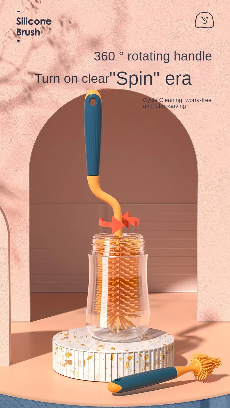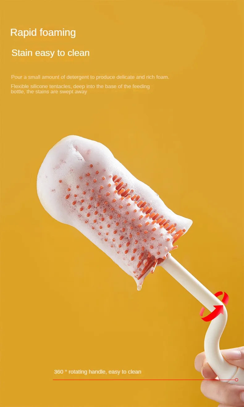 360° Rotation Silicone Bottle Brush Set: Baby Bottle Cleaning Essential