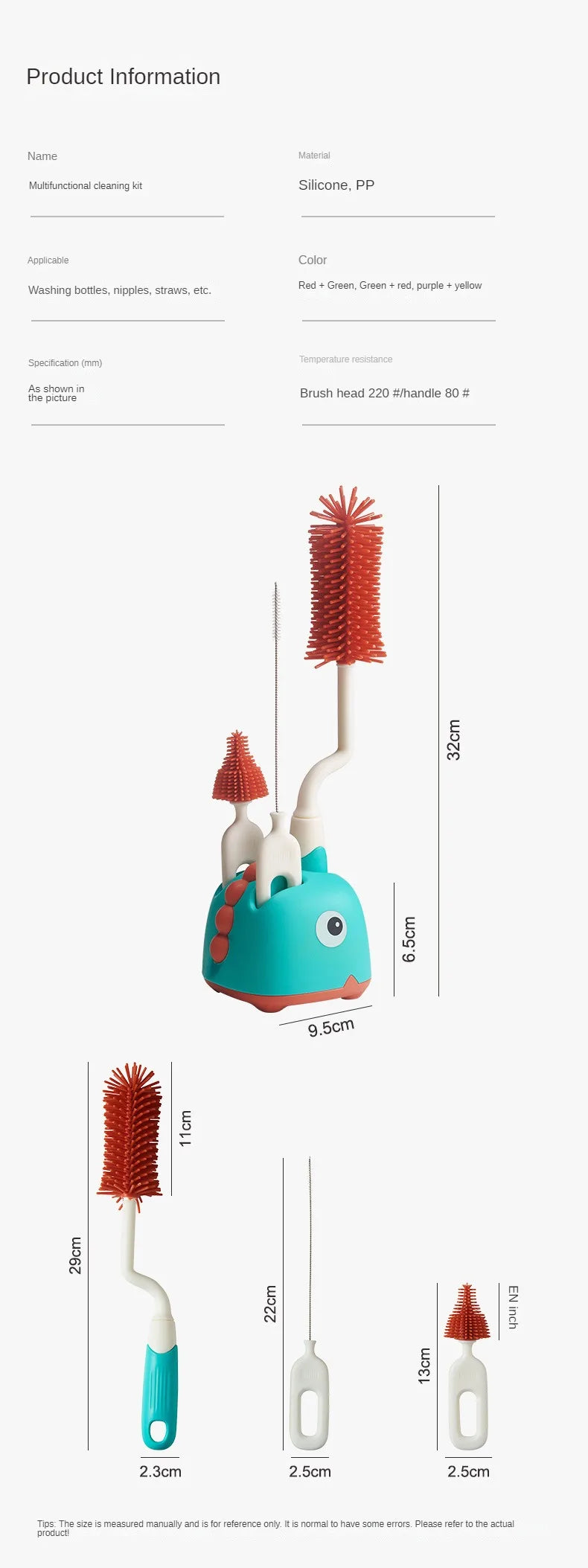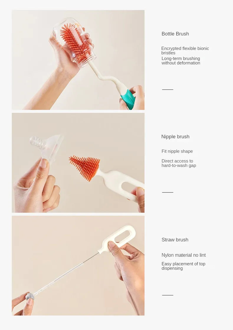 - Versatility at Its Best: Tailored for baby bottles, this set is a versatile solution, also ideal for cleaning pacifiers, nipples, and other baby items with intricate shapes.