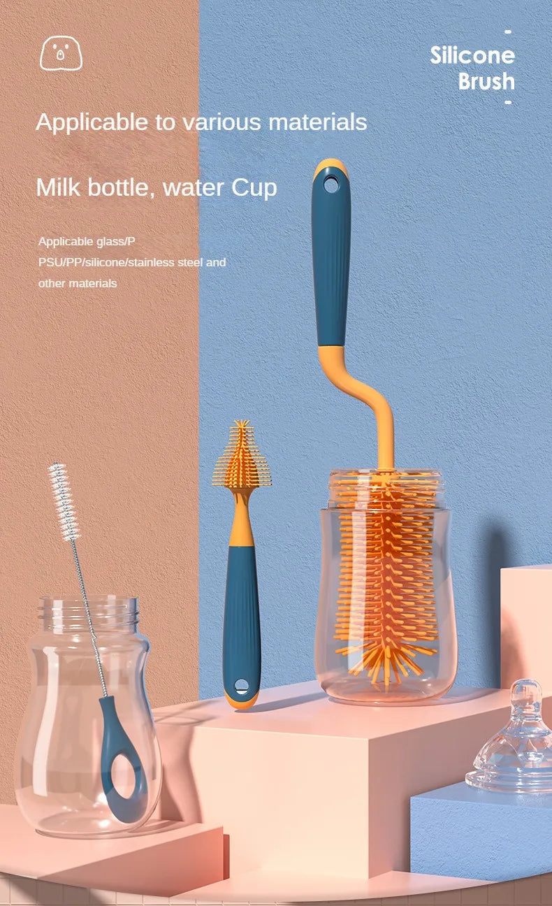 Embark on a journey of cleanliness and convenience with our revolutionary 360° Rotation Silicone Bottle Brush Set. This set is meticulously designed to redefine the way you clean your baby's bottles, ensuring a thorough and hygienic experience.