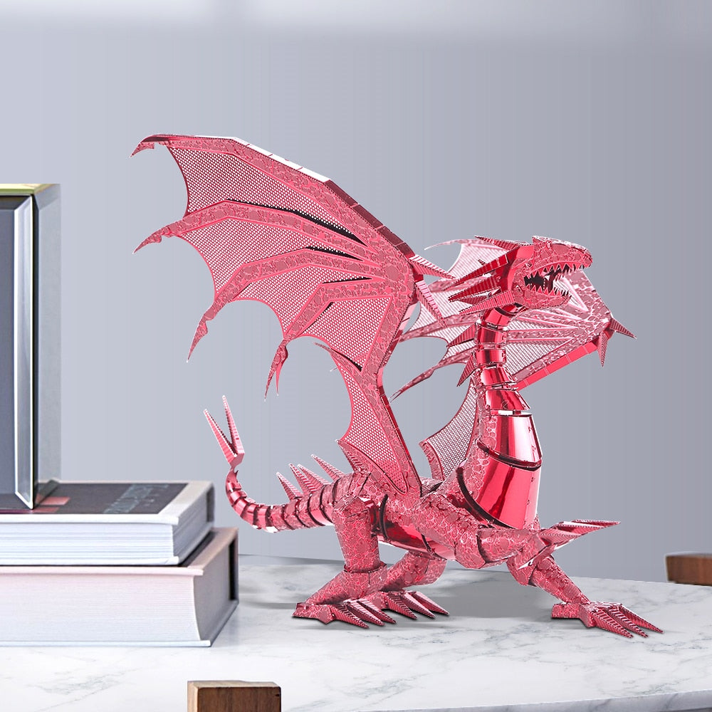 The 3D-assembled metal model Dragon Flame simulates the naughty Dragon that loves freedom and adventure. He is covered with thick scales all over his body and is equipped with sharp teeth, powerful limbs, and a strong dragon tail. At night, it likes to stand quietly on the edge of a cliff and look up at the starry sky.