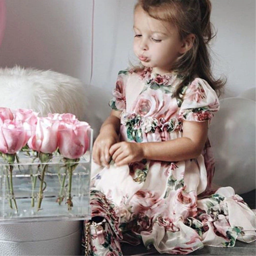 This 3D Floral Full Print Design Puff Sleeves Baby Princess Dress is uniquely designed with ruffles on the neck and skirt edges and has rose pattern 3d prints all over giving that classic feminine look. A fashion casual dress for a fine princess with the sweetest smile.
