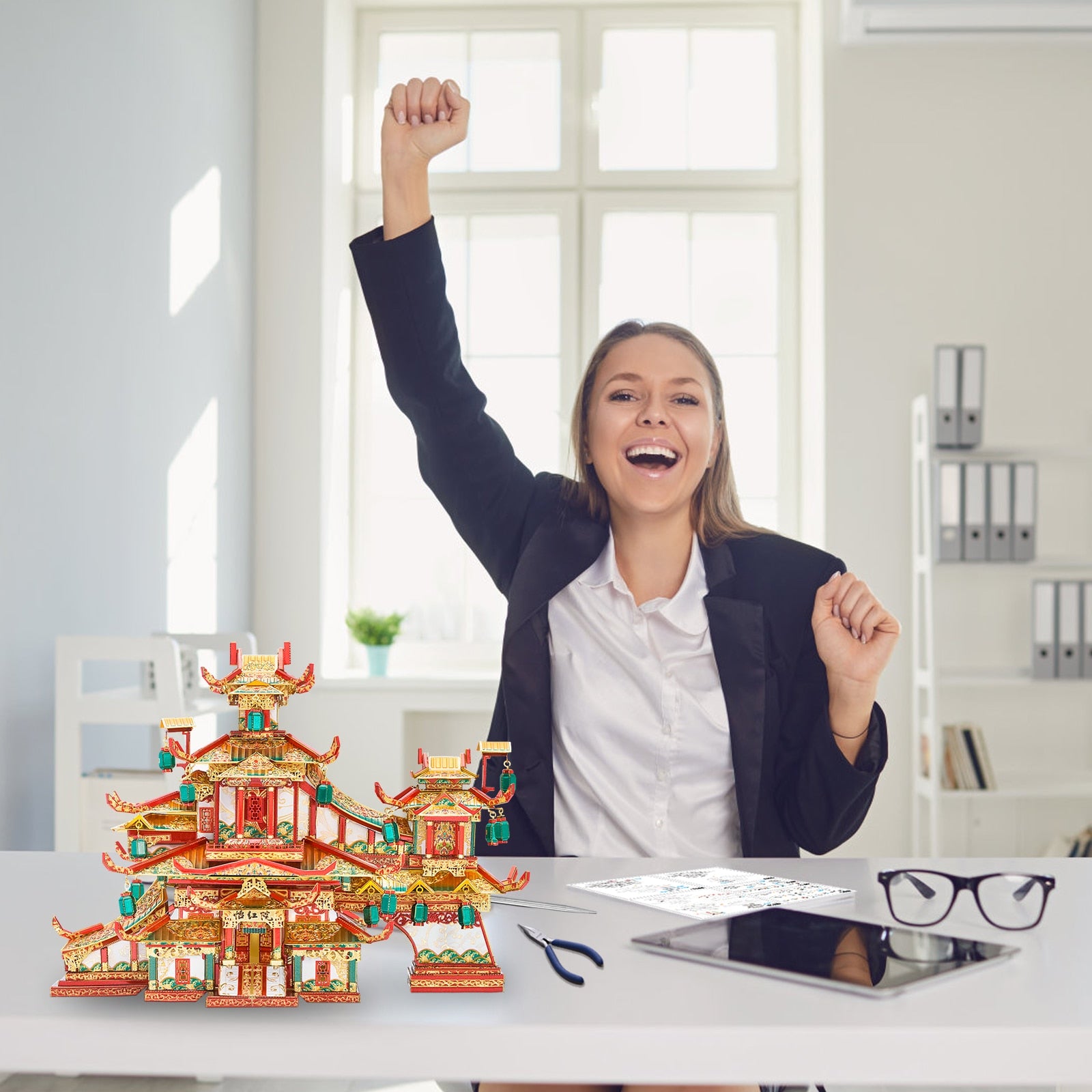 The Yihong Garden Assembly 3D Metal Model simulates the place where beauties sang and danced in ancient China. A place to entertain the whiskers. Have a good time assembling this fun model.