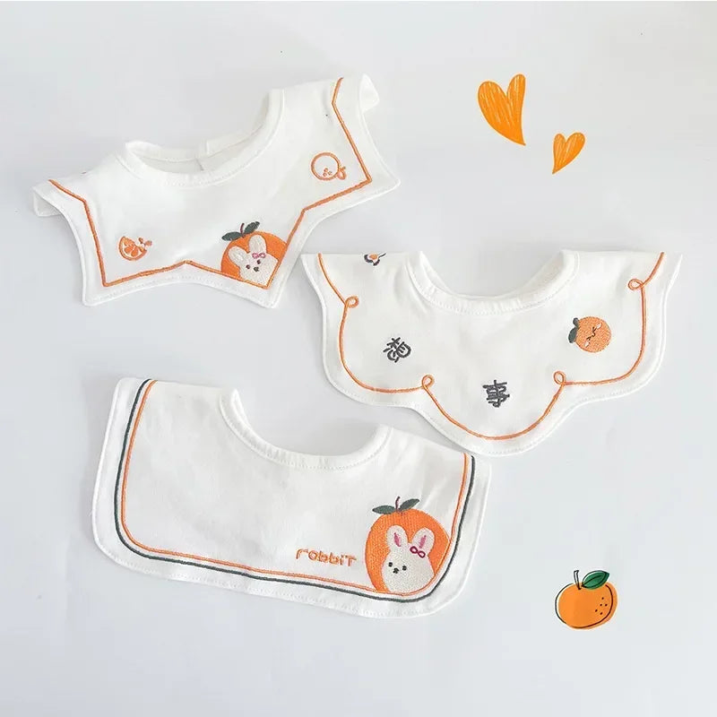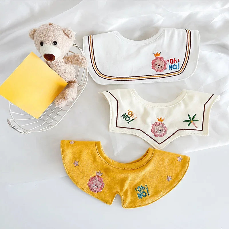 3PCS Korean Cotton Baby Bib Set – Soft Embroidered Waterproof Saliva Towels for Boys and Girls, Flower Collar Design
