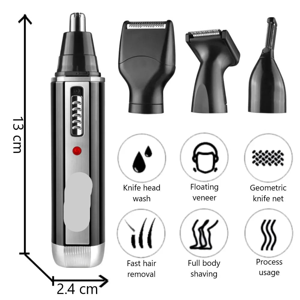 ✅ Ensemble de soins 4 en 1 : Comprend une tondeuse nez, une tondeuse barbe, une tondeuse sourcils et Tondeuse pour favoris/poils – idéale pour une épilation complète du visage.