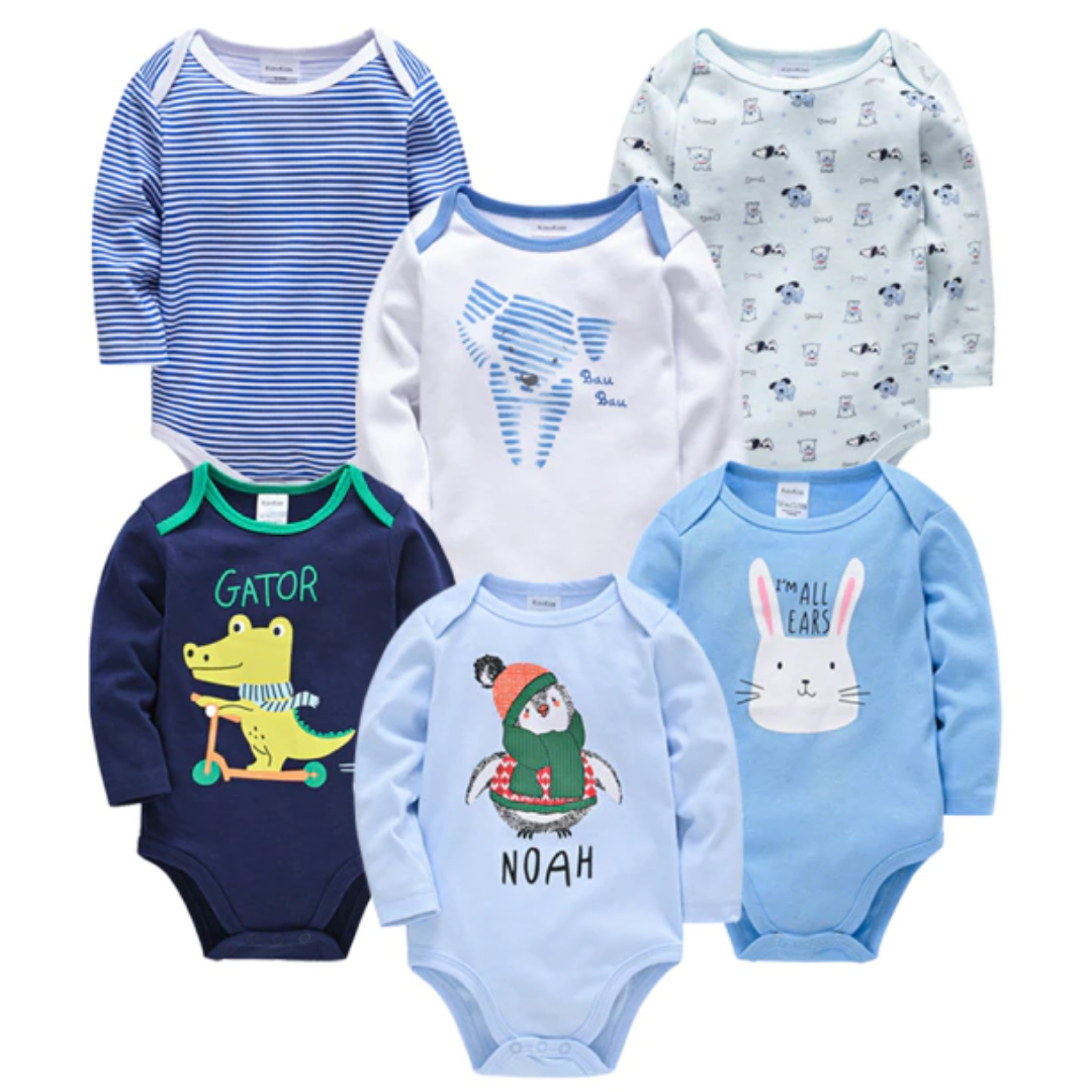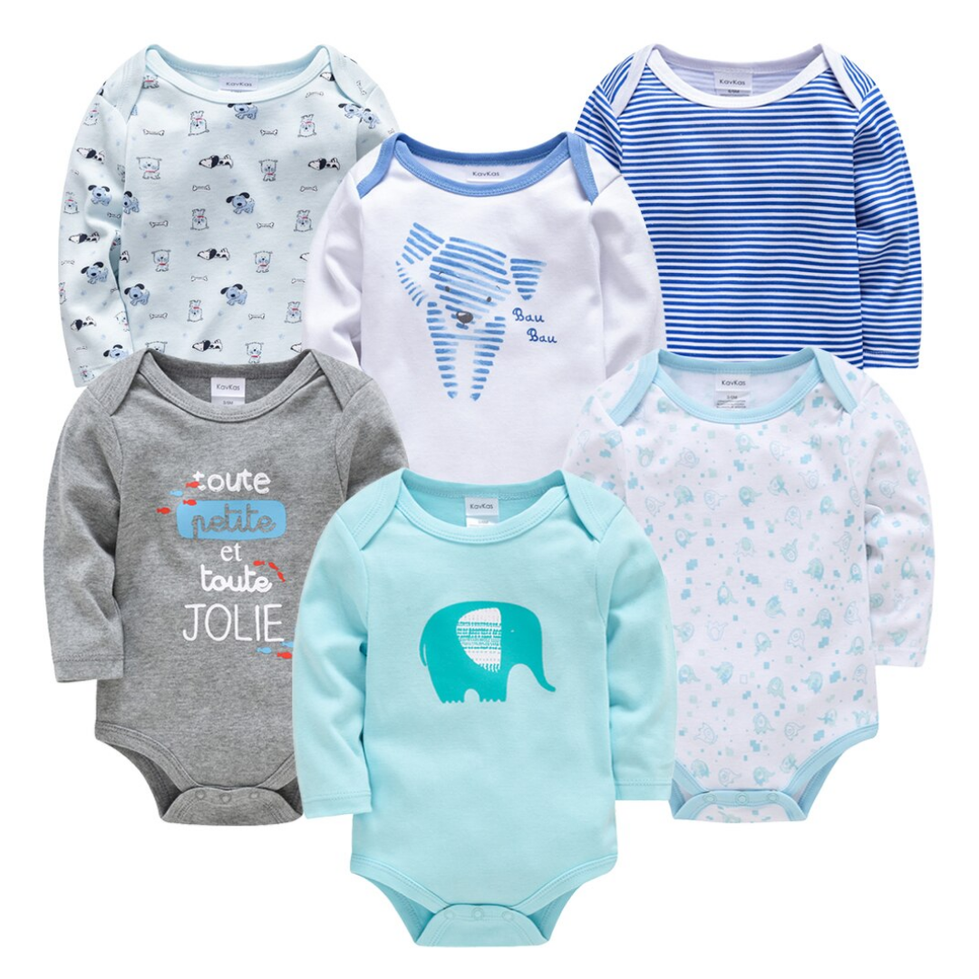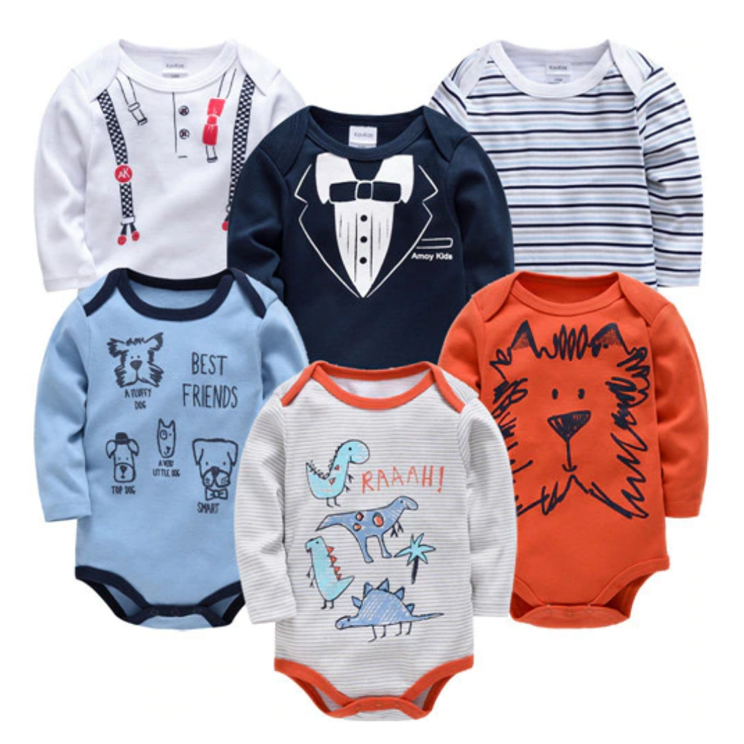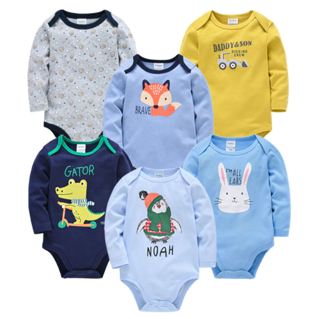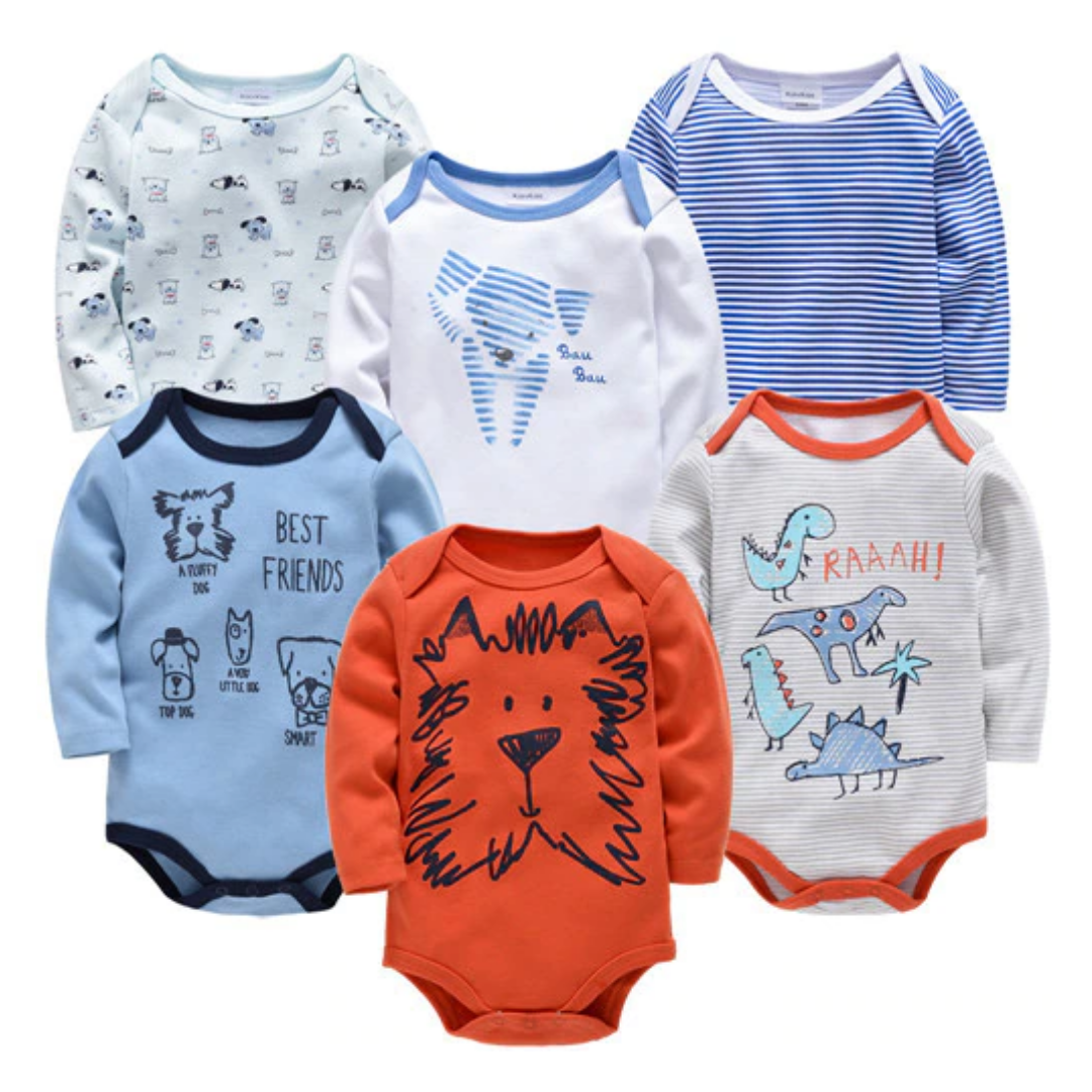 6 Pcs Bundle Cartoon Print Baby Boy Long Sleeve Onesies