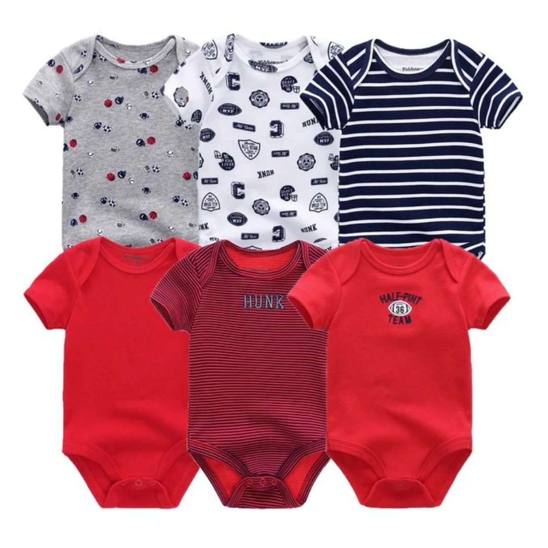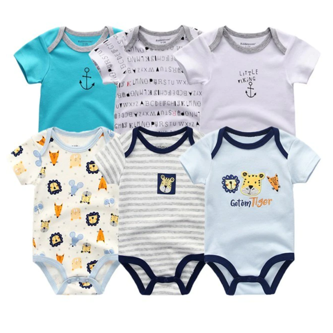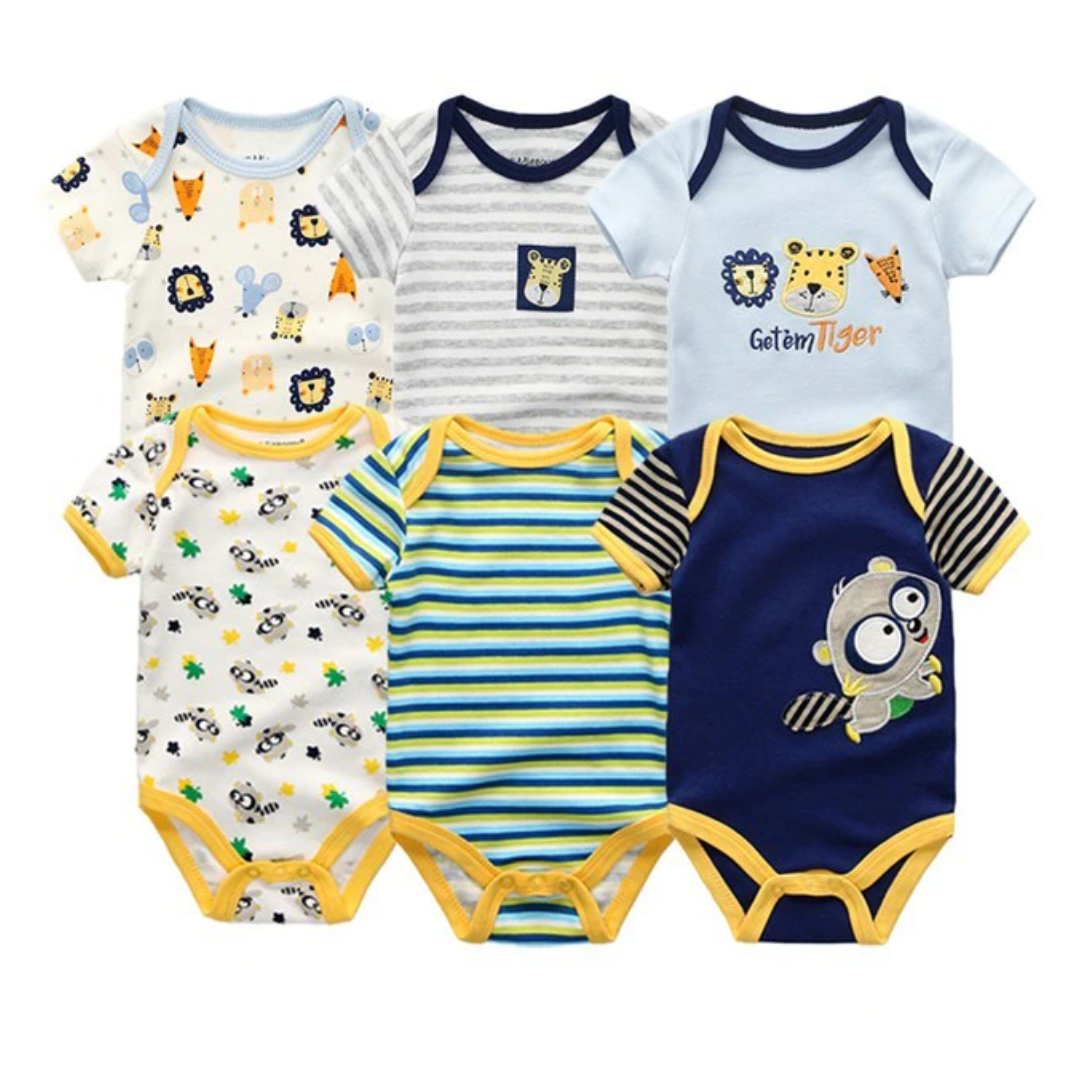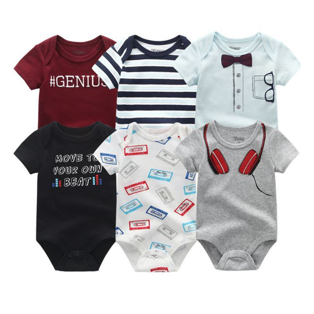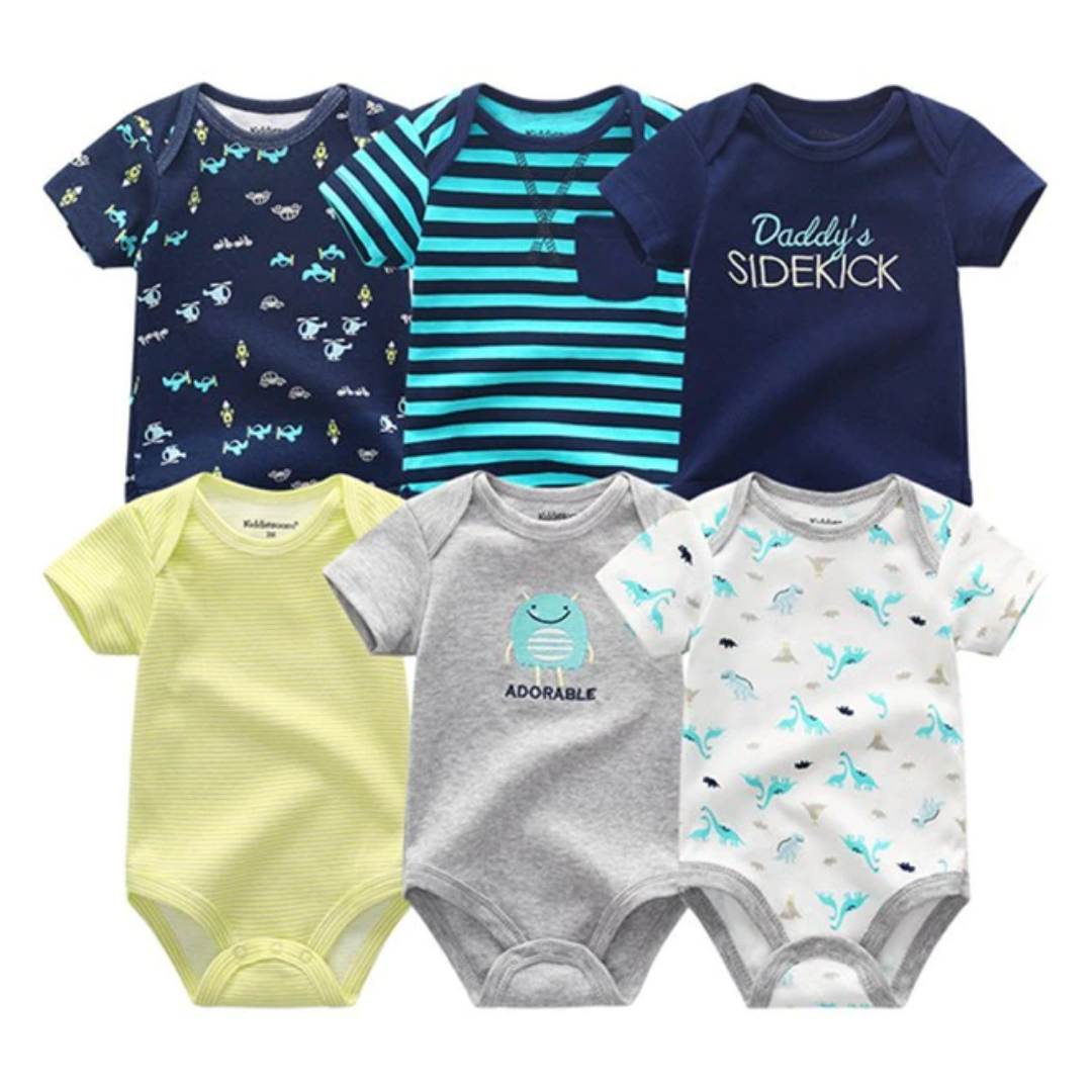 6 Pcs Bundle Mix Prints Soft Cotton Baby Boy Onesies
