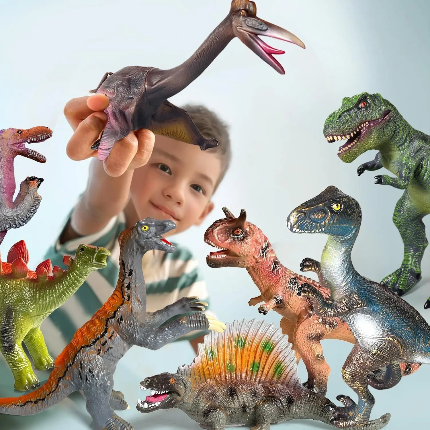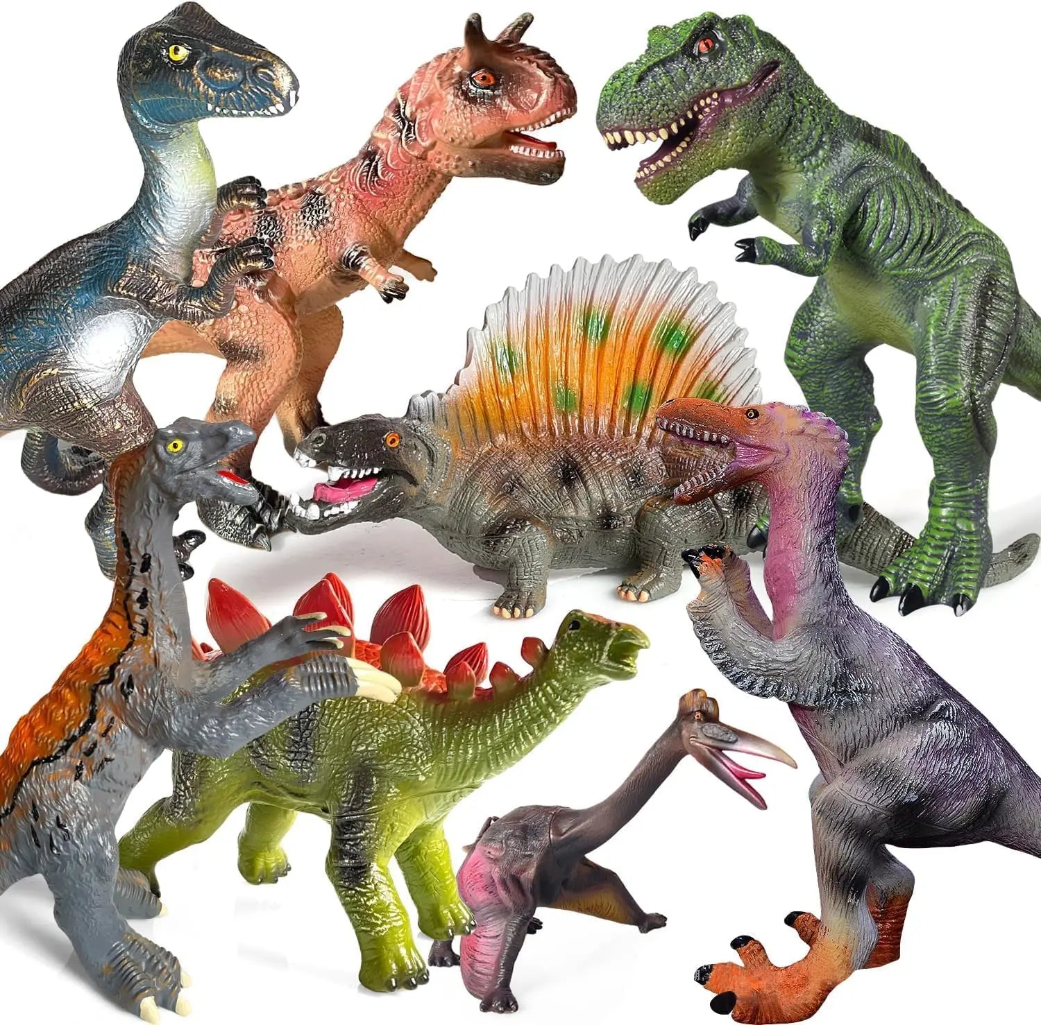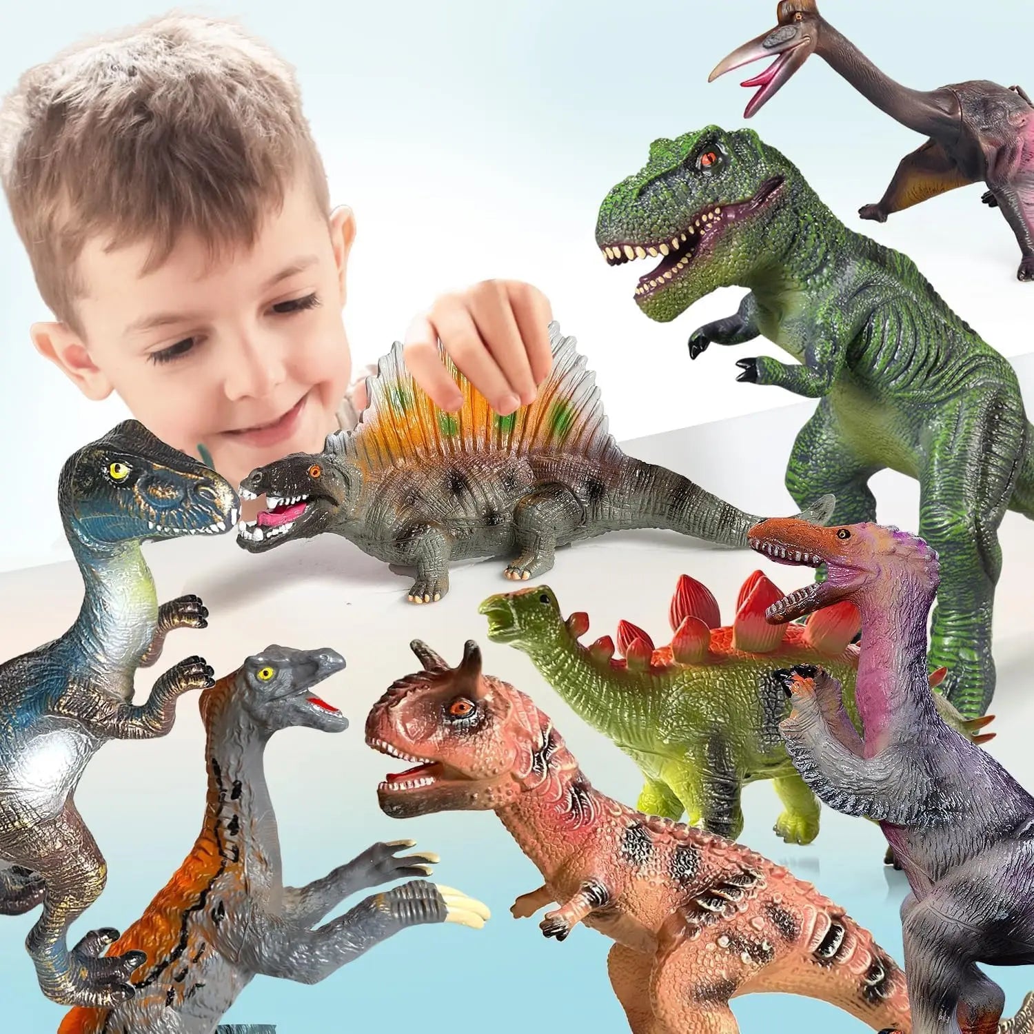 Diverse Collection: The set includes a variety of species (carnivores, herbivores, flying reptiles) to give children a comprehensive understanding of the dinosaur world. (Includes 8 different figures as shown in the image).