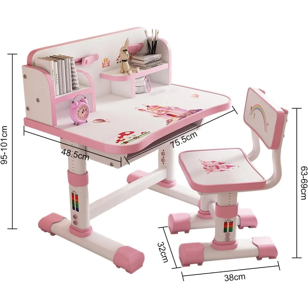 Adjustable Kids Desk and Chair Set – Ergonomic Children’s Study Table with Golden Distance Design, Spacious Desktop, and Storage Drawer – Ideal for Homeschooling and Learning