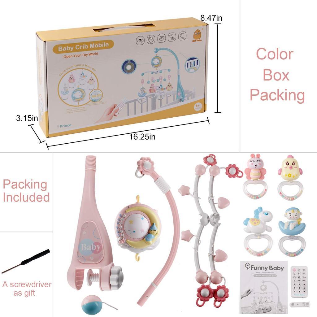 Easy to Use: Easy to assemble and attaches to the crib. With remote control, it can control all the functions of the music box. Goes wherever the baby goes. Use on cribs, play yards, carriers, strollers, bassinets, and more