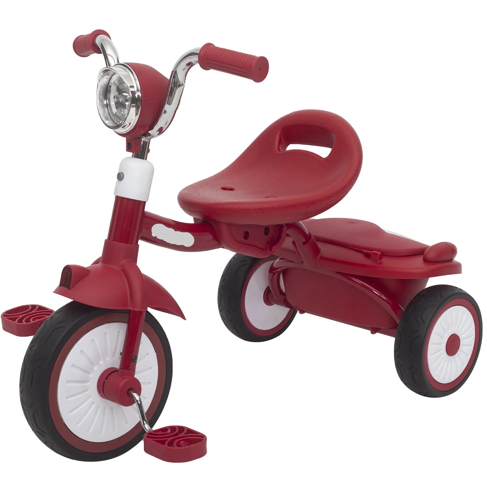 Baby Foldable Tricycle Trike with Pedals – Shock-Absorbing PU Wheels, Cool Lights, Adjustable Seat – First Walker Bike for Kids Ages 1-5