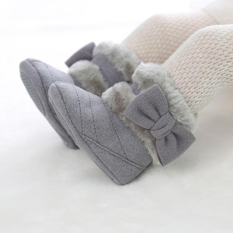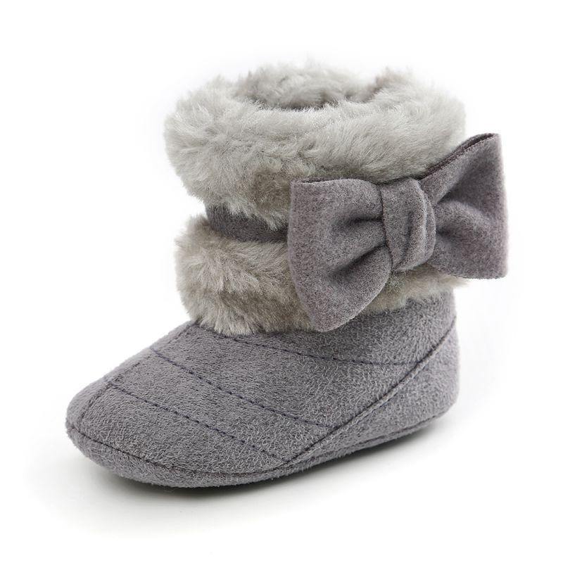 Baby Girl Bow Boots are trendy winter shoes for little girls who like to doll up with flair. The boots are lined with faux-fur and aligned with a bow to create a noticeable style statement.