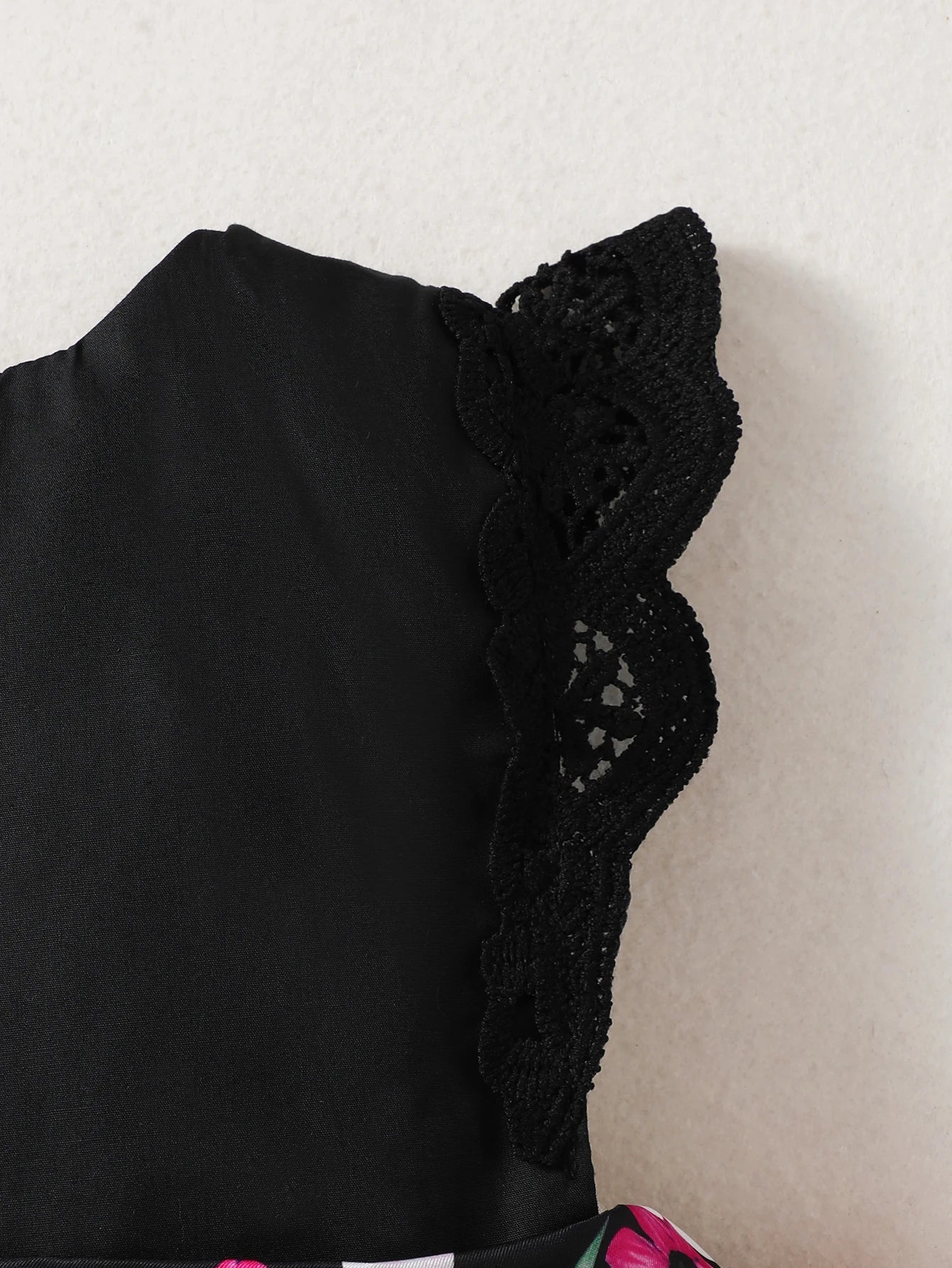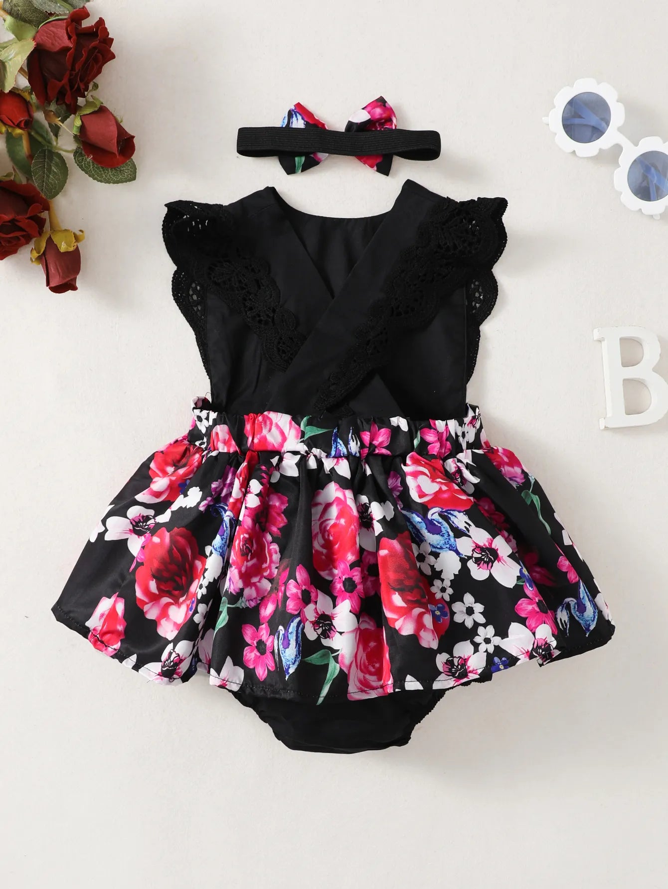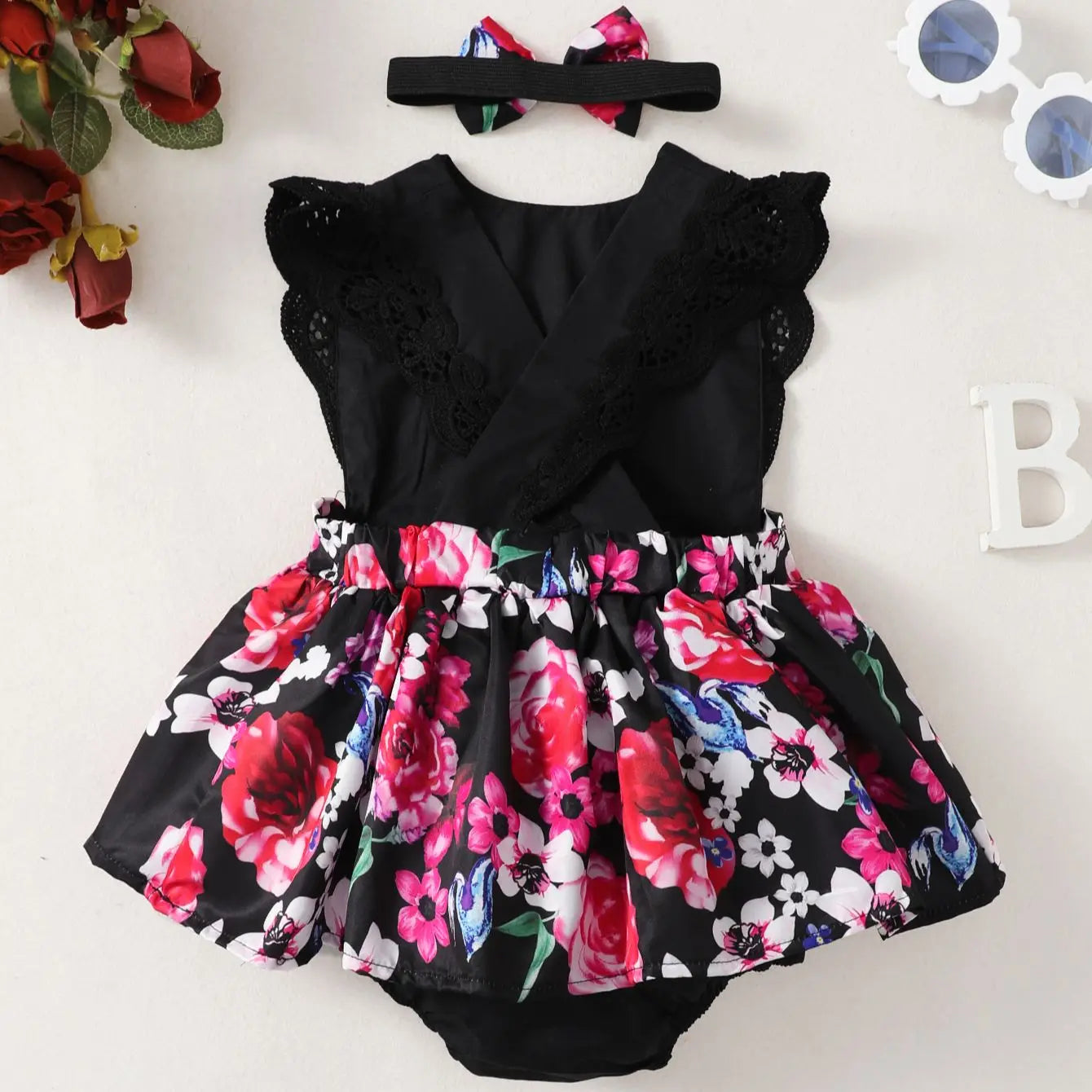 Order now and dress your baby girl in style with our Sleeveless Lace Flower Print Dress!