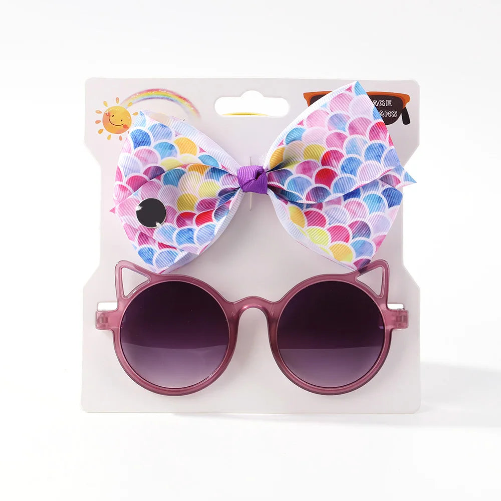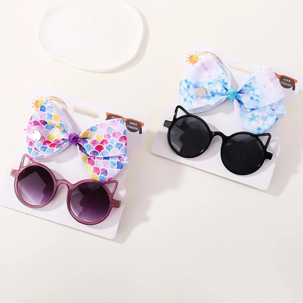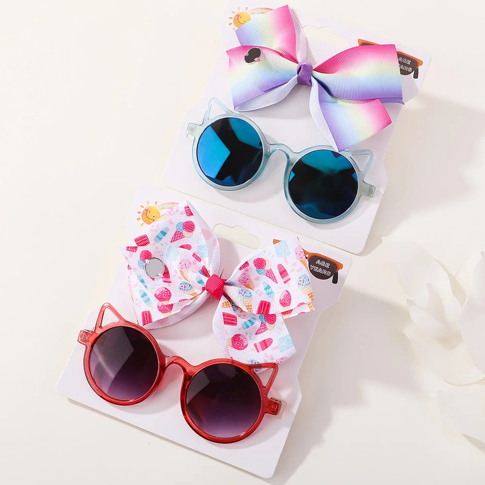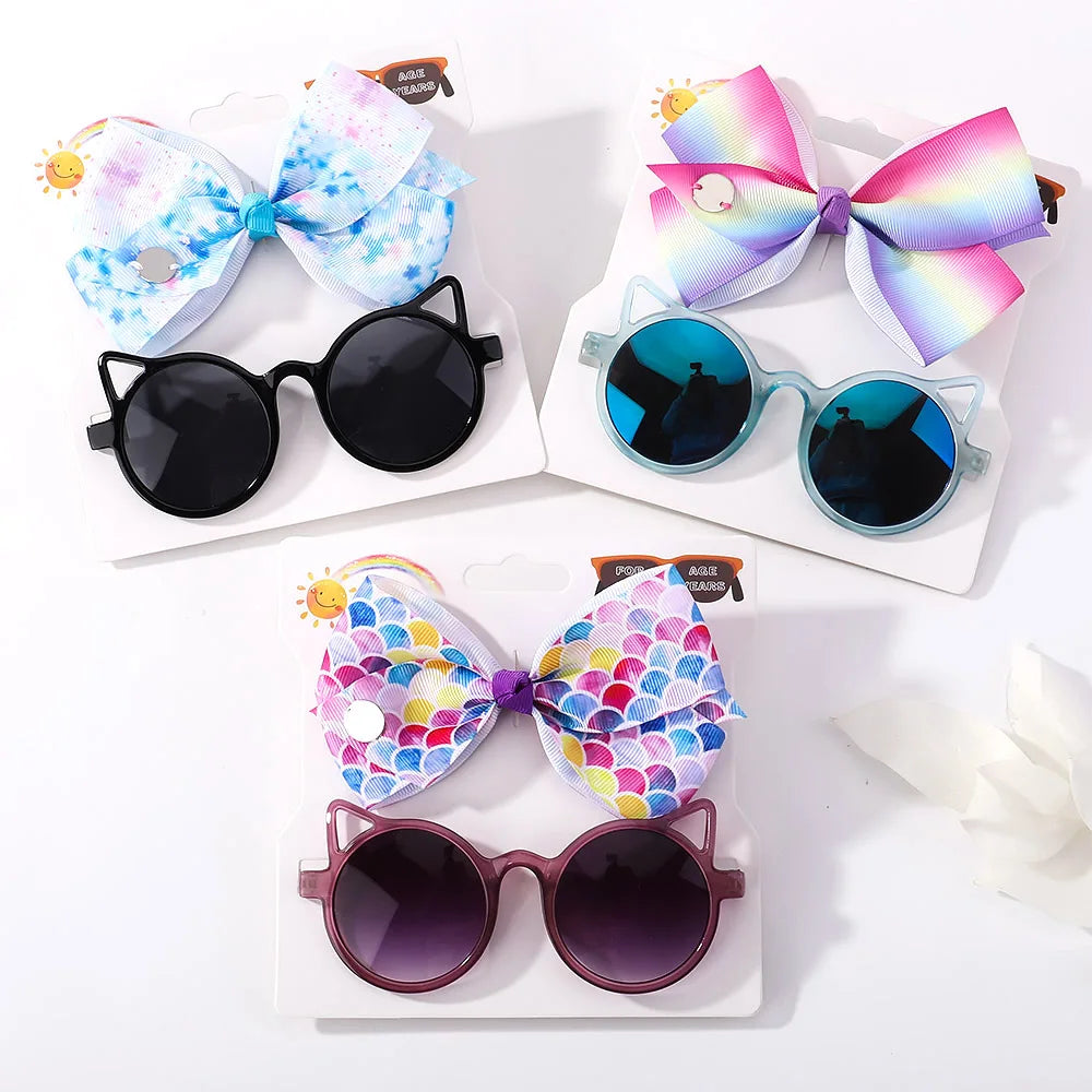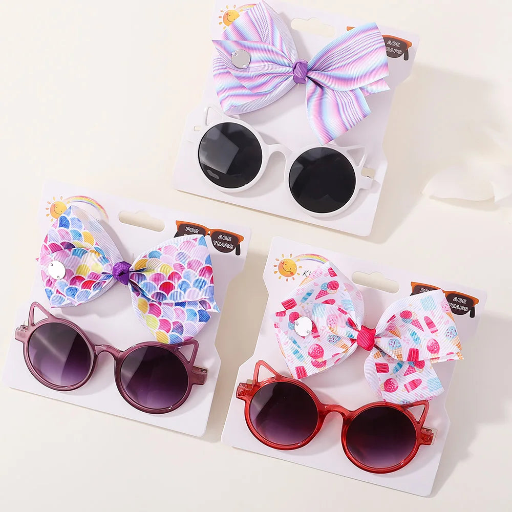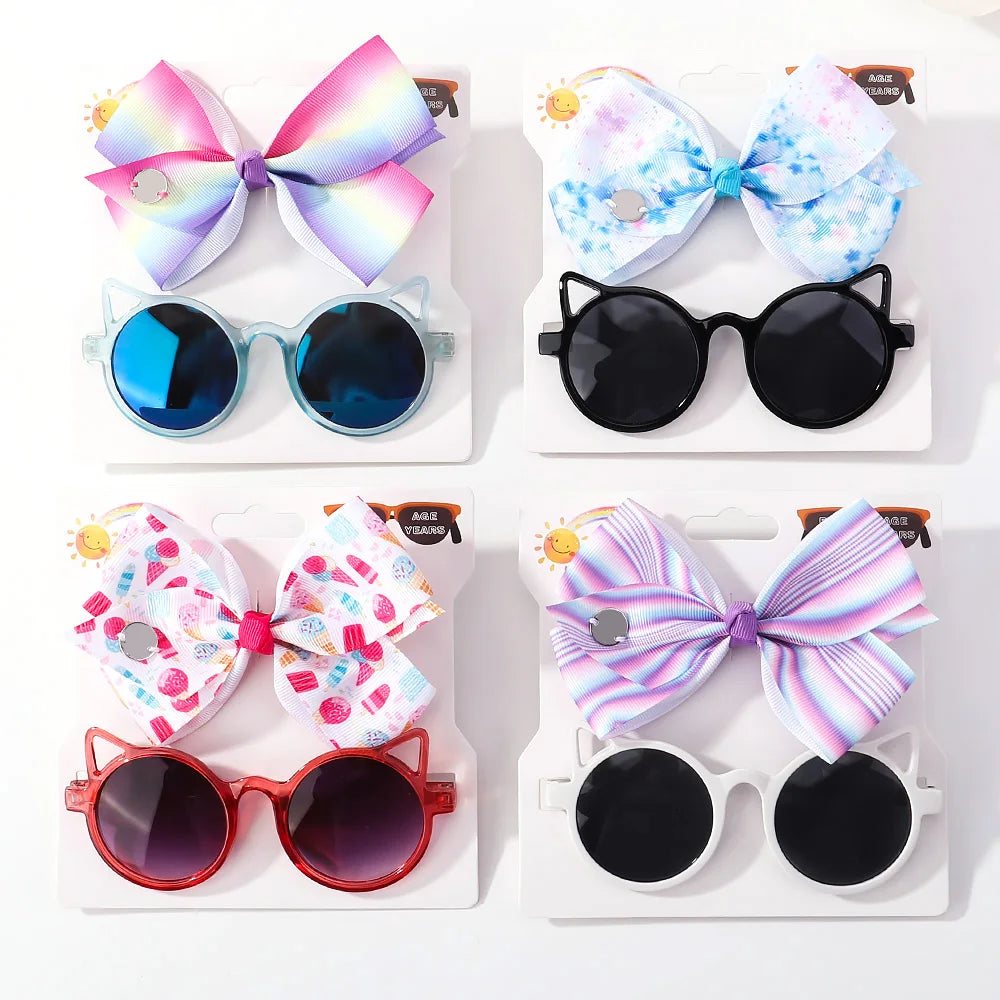 Baby Girls Hair Accessories Set: Bows and Cartoon Sunglasses Pack