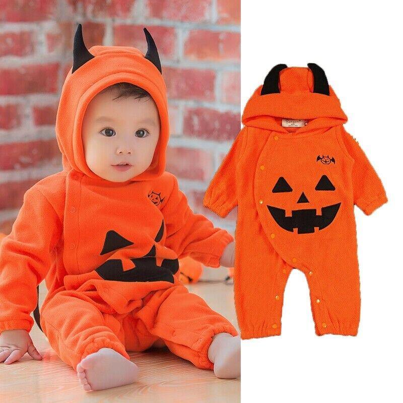 Get in the festive Halloween spirit by dressing up your tiny little monsters in our “Baby Pumpkin Costume Onesie”. The onesie is made from super comfy fleece that lets them wriggle around with freedom. It has a hood on which 3d felt horns are attached that go really well with the spooky laughing face on the front and Wings at the back.