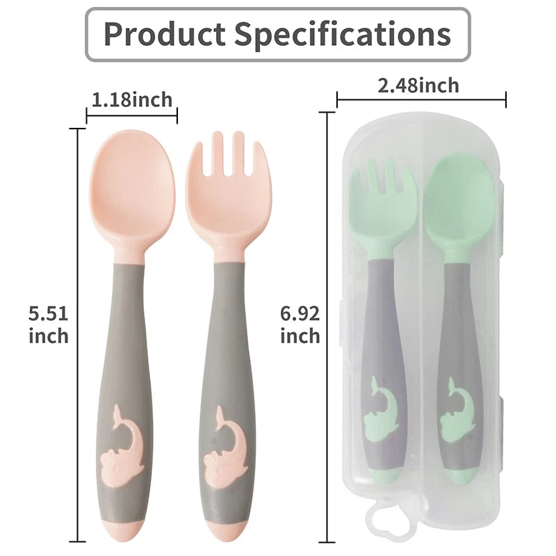 Package includes: 1 x Baby Silicone Utensils Set: Training Spoons
