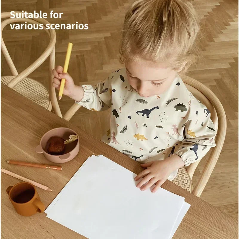 Bavoir imperméable et doux pour bébé – Tablier ajustable à manches longues pour enfants
