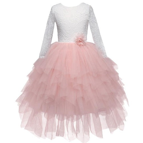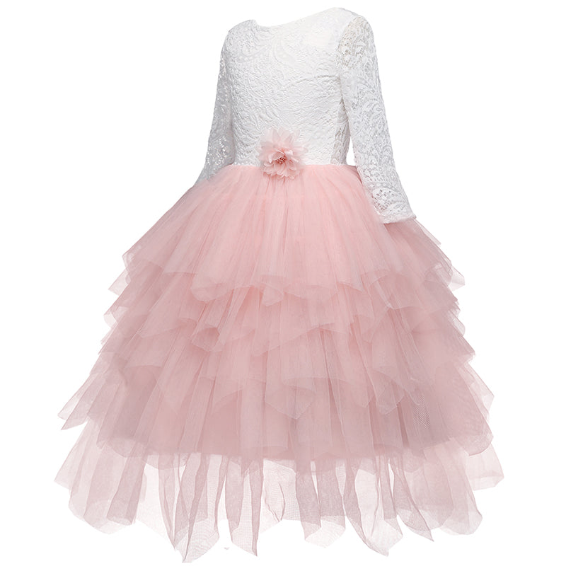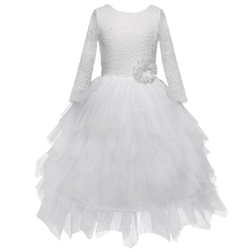Conçue avec raffinement pour allier simplicité et élégance, cette robe dos nu en dentelle à jupe volantée est un incontournable de la garde-robe de votre princesse ! Parfaite pour son anniversaire ou comme robe de demoiselle d'honneur pour un mariage.