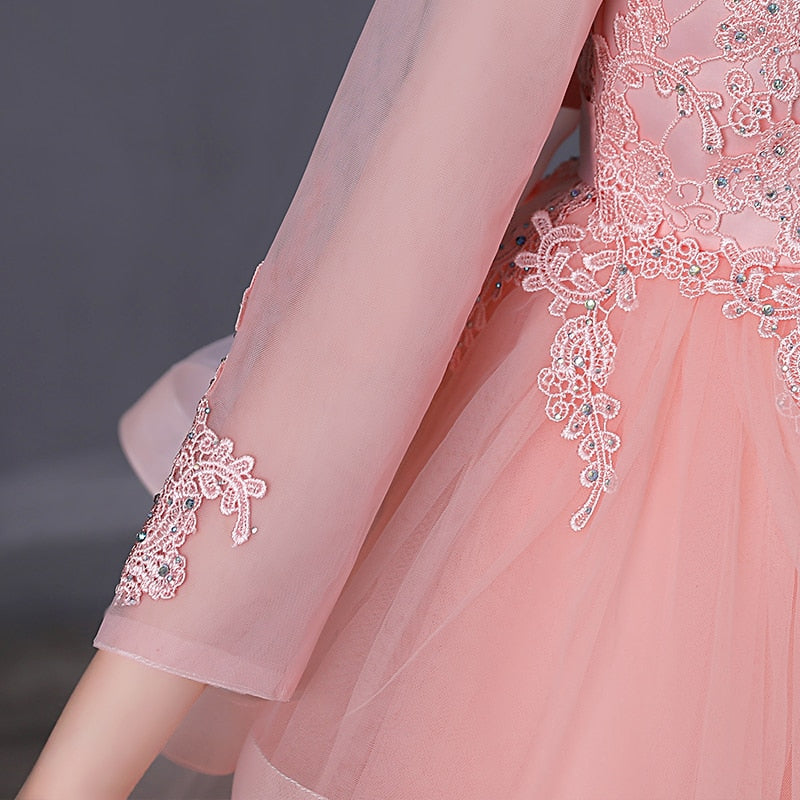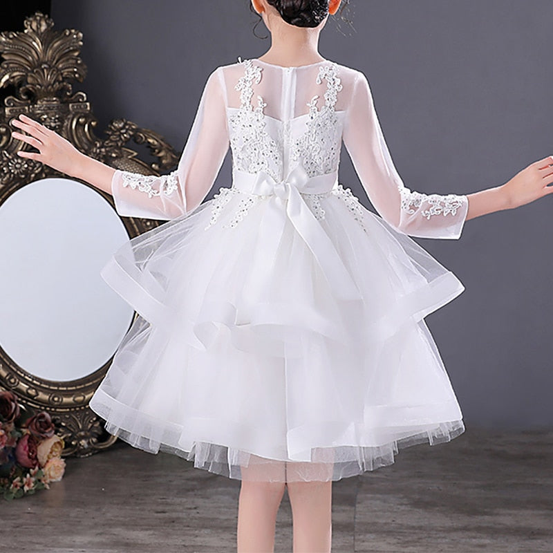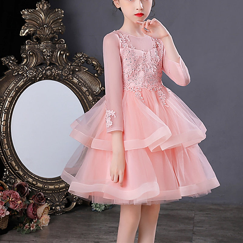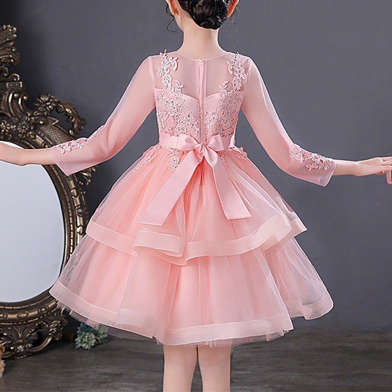 This Beaded Lace Embroidered Mesh Layer Princess Party Dress is perfect for any little girl's birthday. The fabric is high quality and easy to wear which can be worn all day long without feeling uncomfortable. The embroidery and lace designs are exquisite and elegant, suitable for a true princess.