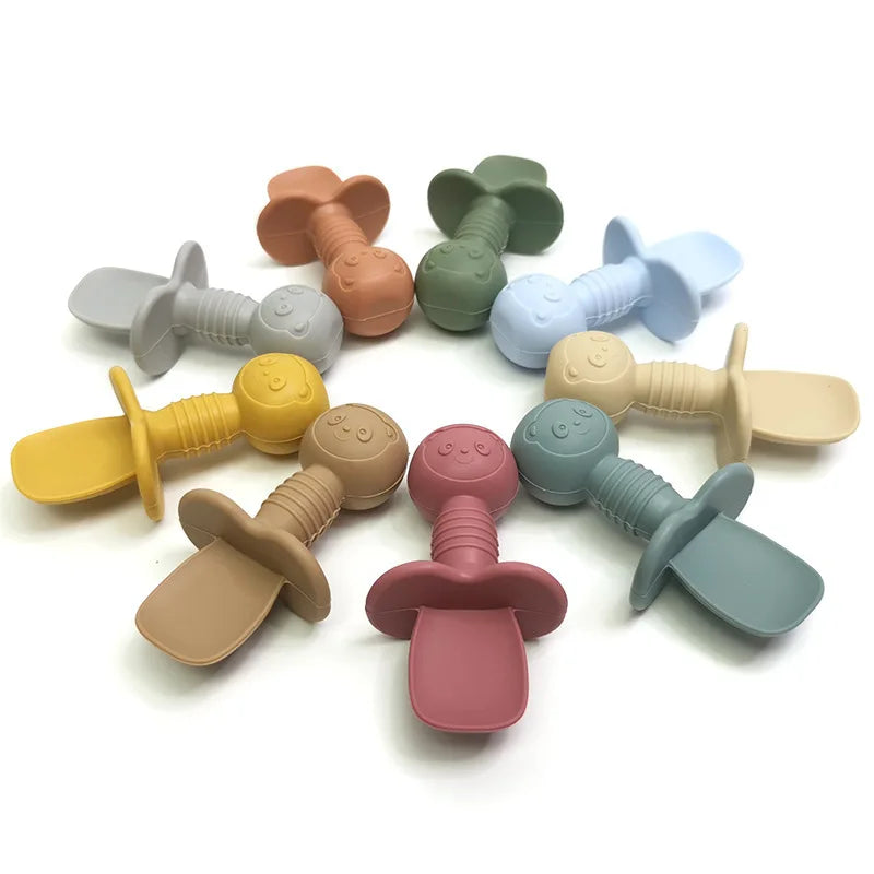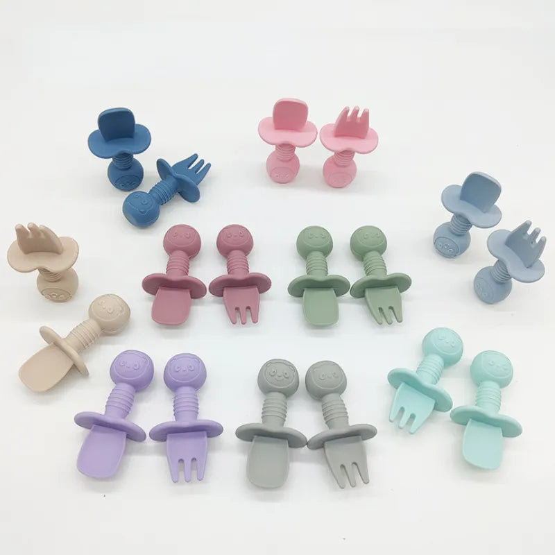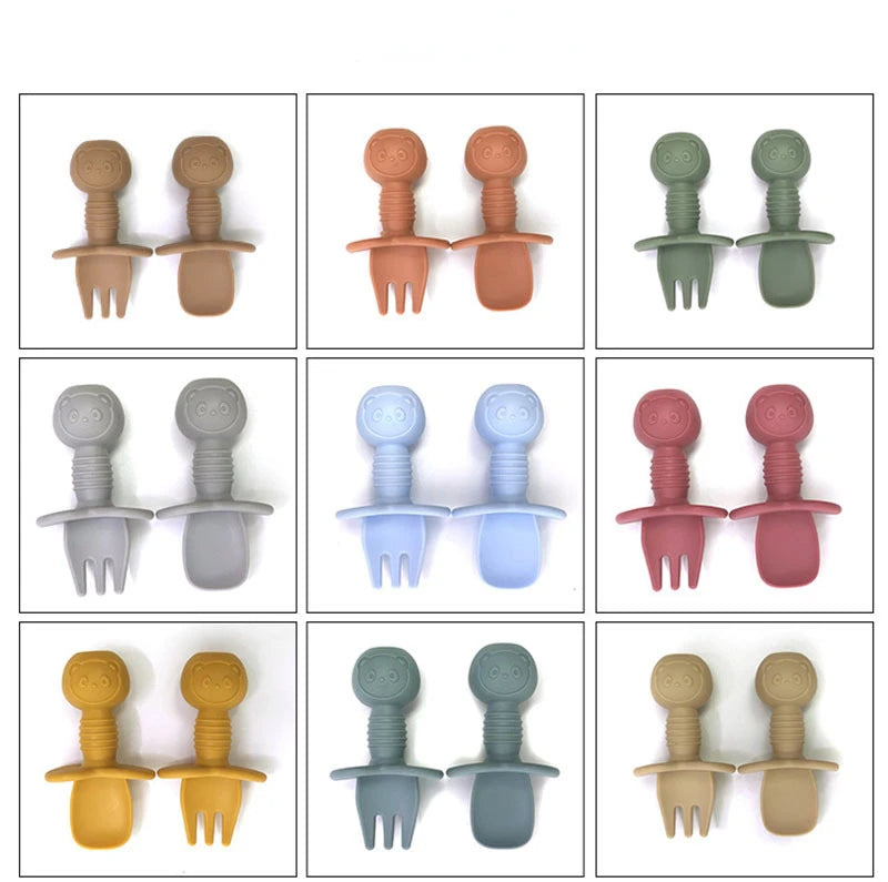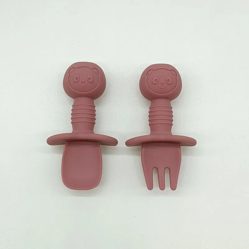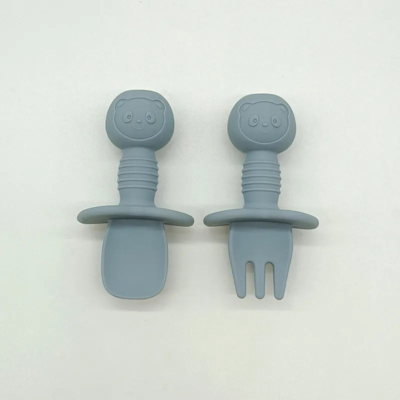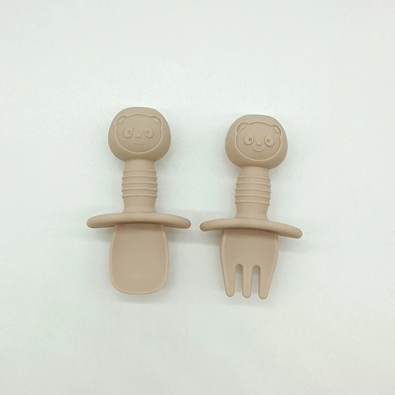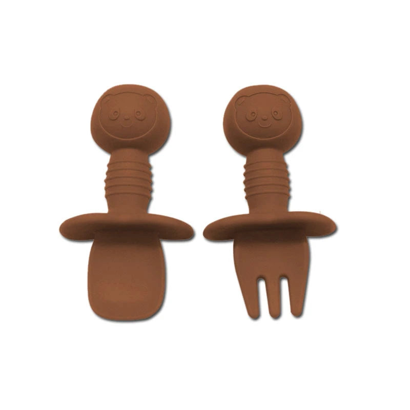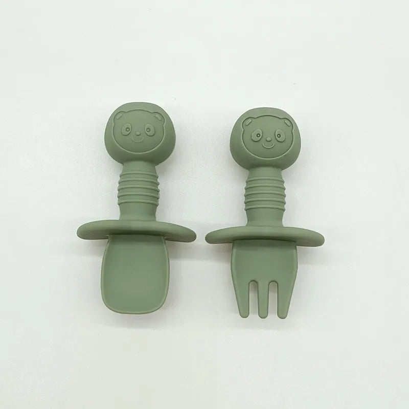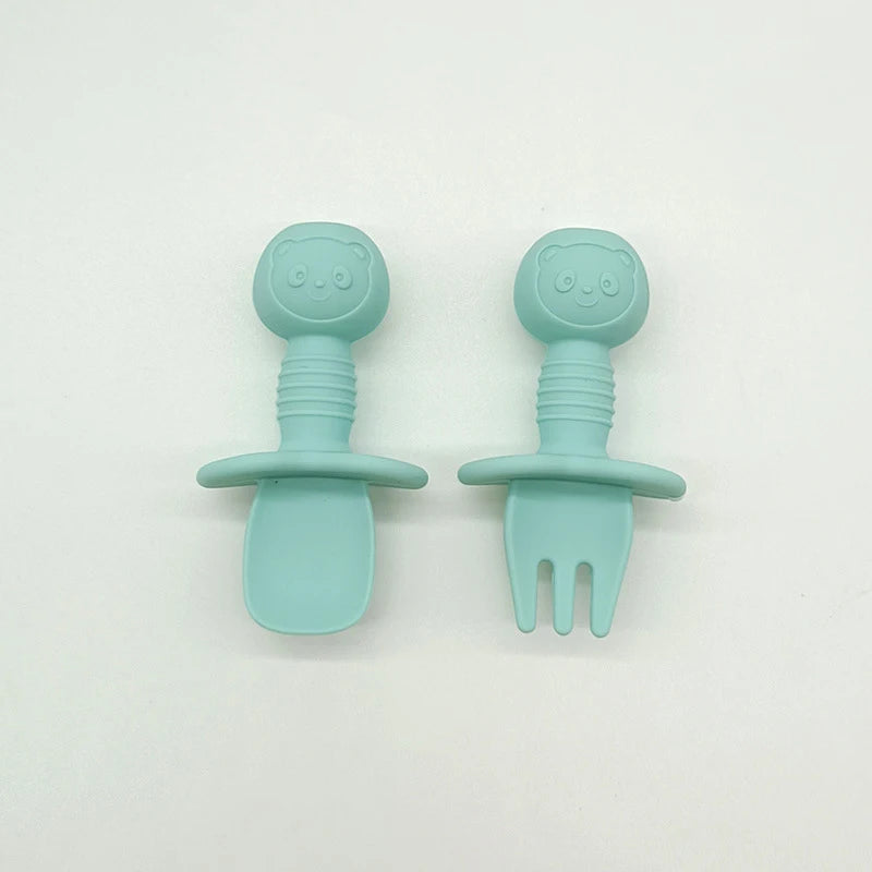 Introducing: Bear Fork and Spoon Set - Silicone Baby Training Tableware