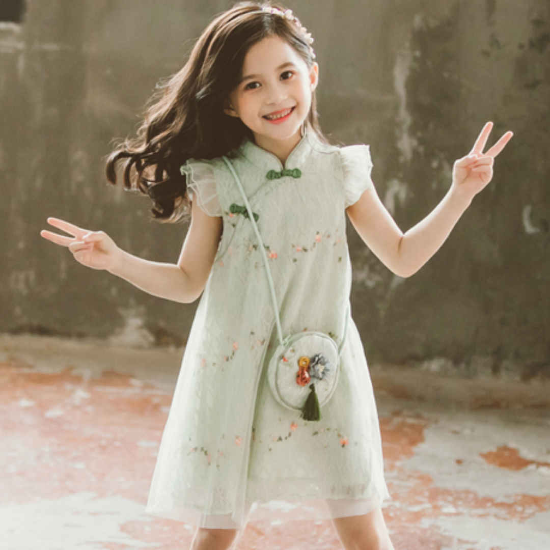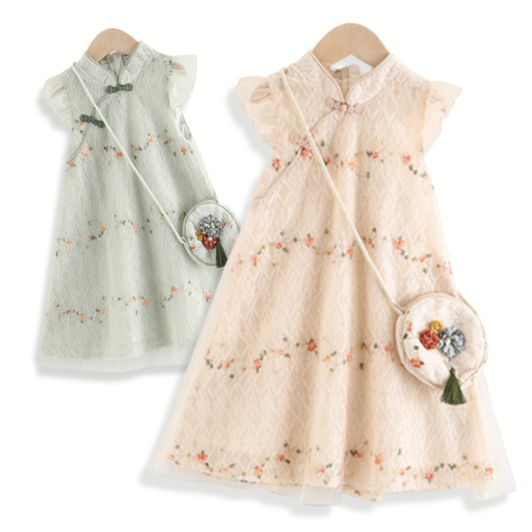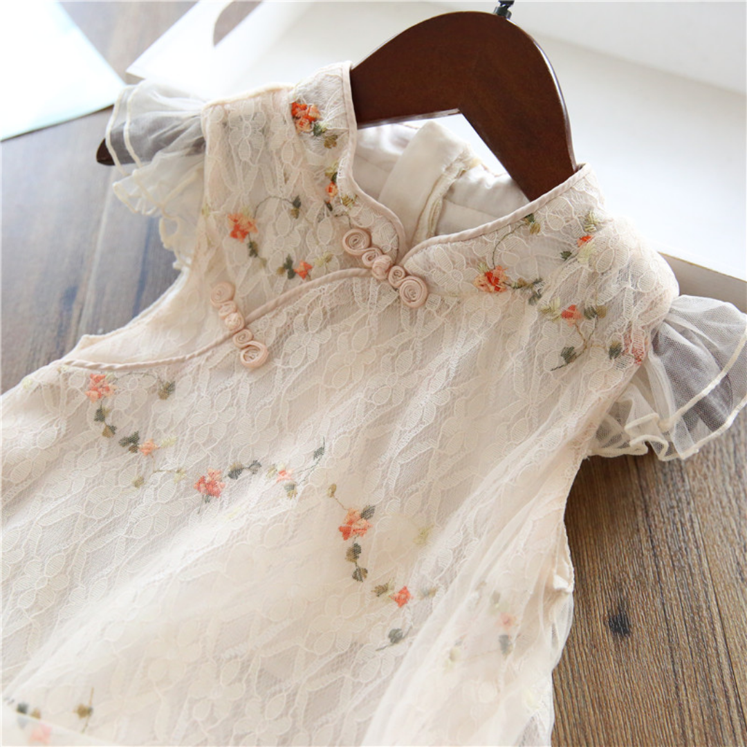 This Butterfly Sleeves Chinese-Style Collar Floral Summer Dress is made of lightweight lace fabrics tailored with exquisite Chinese style tailoring design. It is nice and comfortable to wear for your girl's daily fashion ootd.