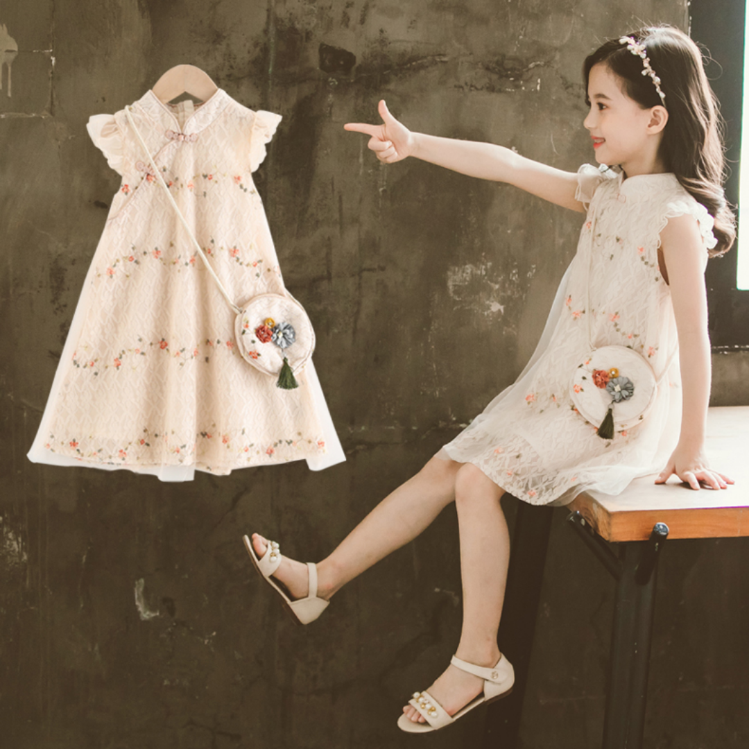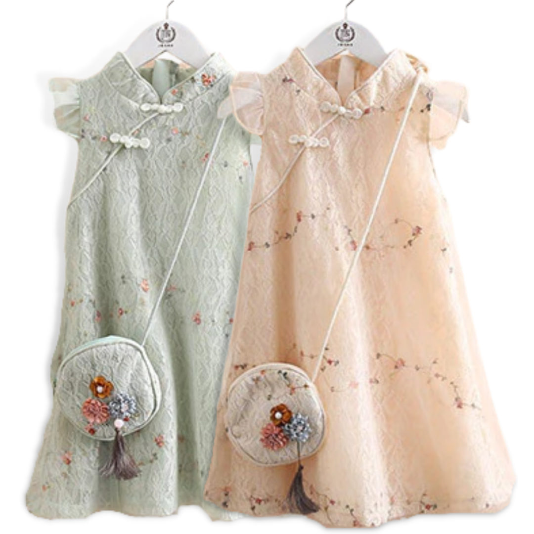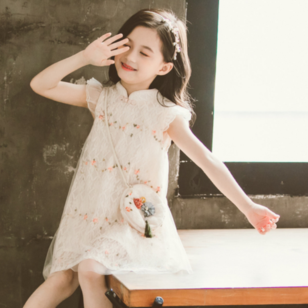 This Butterfly Sleeves Chinese-Style Collar Floral Summer Dress is made of lightweight lace fabrics tailored with exquisite Chinese style tailoring design. It is nice and comfortable to wear for your girl's daily fashion ootd.