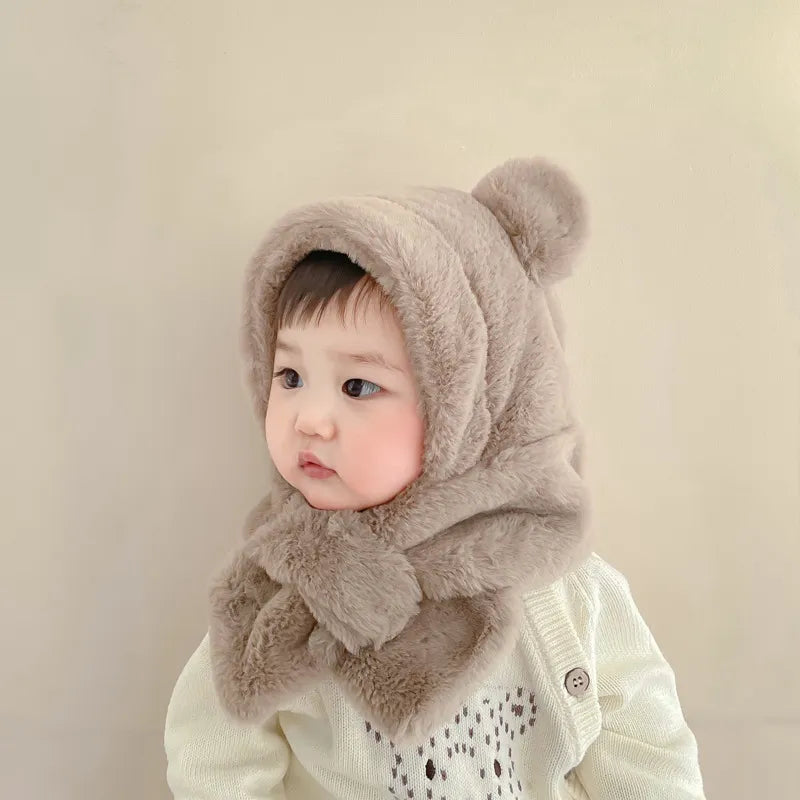 Winter Bear Hat Scarf: Faux Fur Kids' Beanies