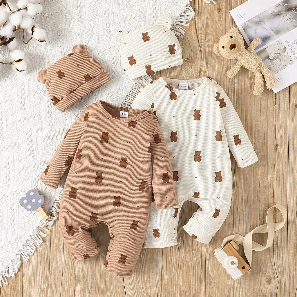 Cartoon Bear Long Sleeve Onesies Set - Unisex Newborn Romper