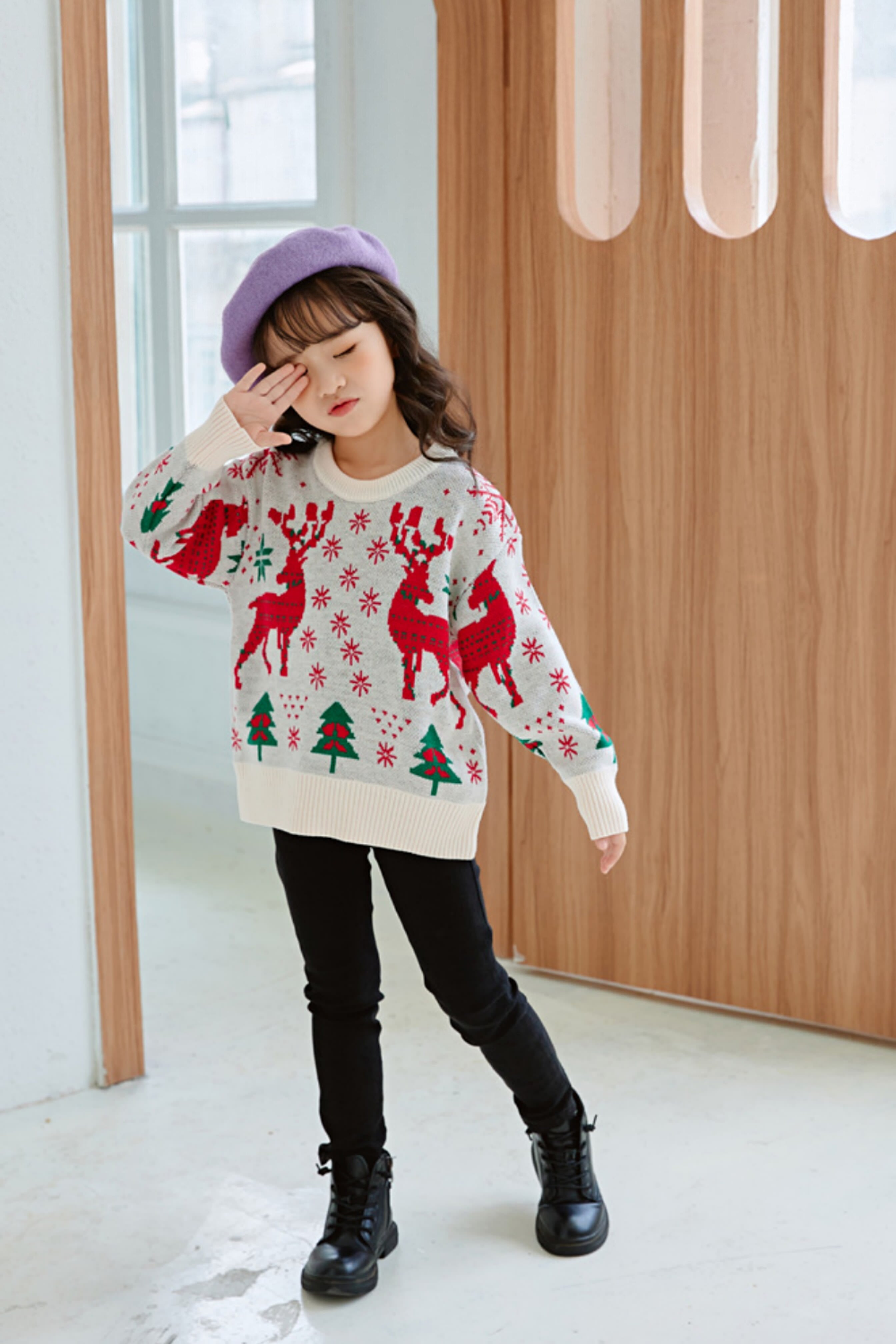 This Christmas Elk Pullover Knitwear Sweater is made of cotton and polyester, it is very warm and stylish. It is a casual and comfortable top that your little girl will surely love to wear during this holiday season and beyond.