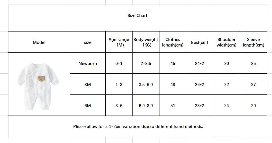 Elevate your baby's wardrobe with our Cotton Newborn Onesie, specially designed for babies aged newborn to 6 months. Crafted from soft and breathable COTTON material, this onesie is perfect for keeping your little one comfortable during the delightful seasons of Spring and Autumn.