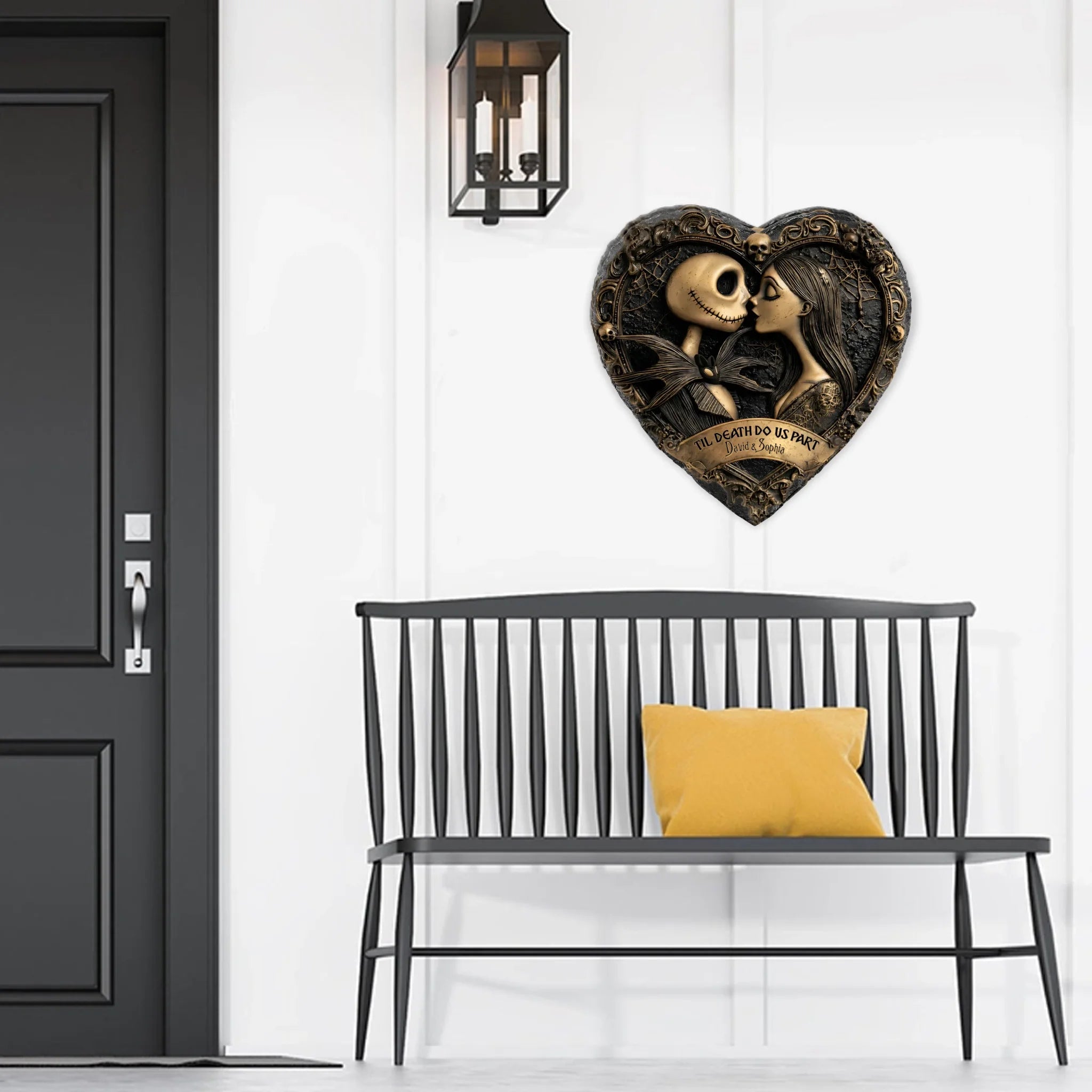 Custom Metal Sign – Couple Jack & Sally Gothic Heart Design | Personalized Couple Names | Romantic Halloween Wall Art | One-Side Printed Metal Sign | Unique Anniversary & Wedding Gift