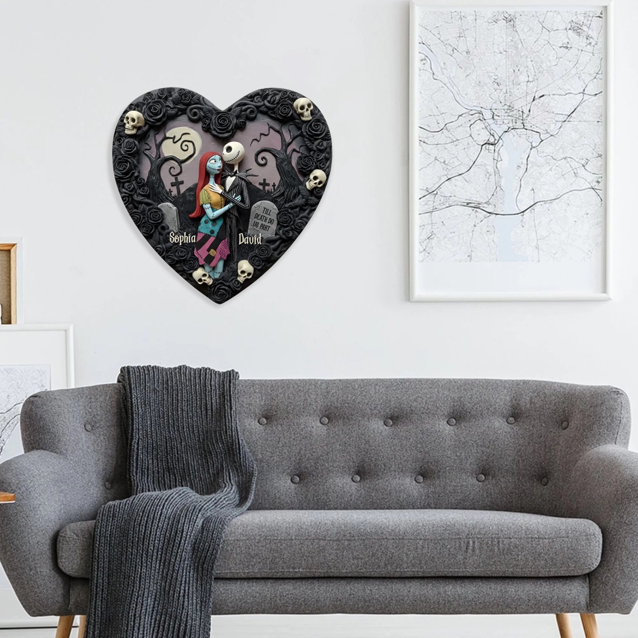 Custom Metal Sign – Jack & Sally Eternal Love Heart Design | Personalized Couple Names | Gothic Romance Wall Art | One-Side Printed Metal Decor | Unique Couple Keepsake Gift